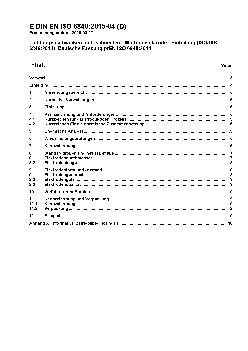 Arc welding and cutting - Nonconsumable tungsten electrodes - Classification (ISO 6848:2004); German version EN ISO 6848:2004