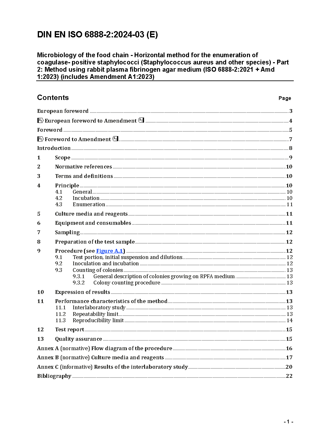 This standard is an amendment of the horizontal method for the enumeration of coagulase-positive staphylococci ba means of using rabbit plasma fibrinogen agar medium.