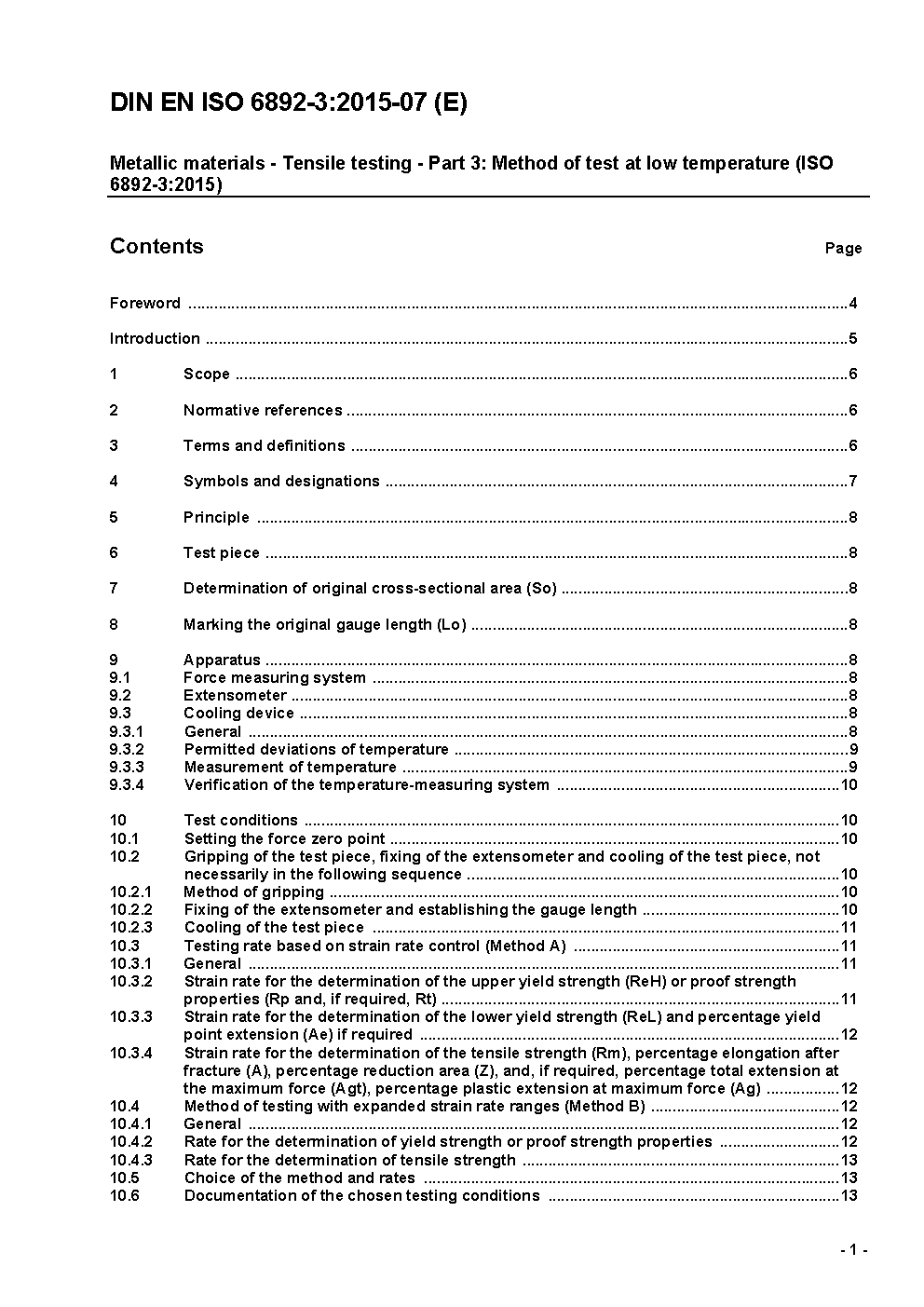 This International Standard specifies a method of tensile testing of metallic materials at temperatures between +10 °C and -196 °C.