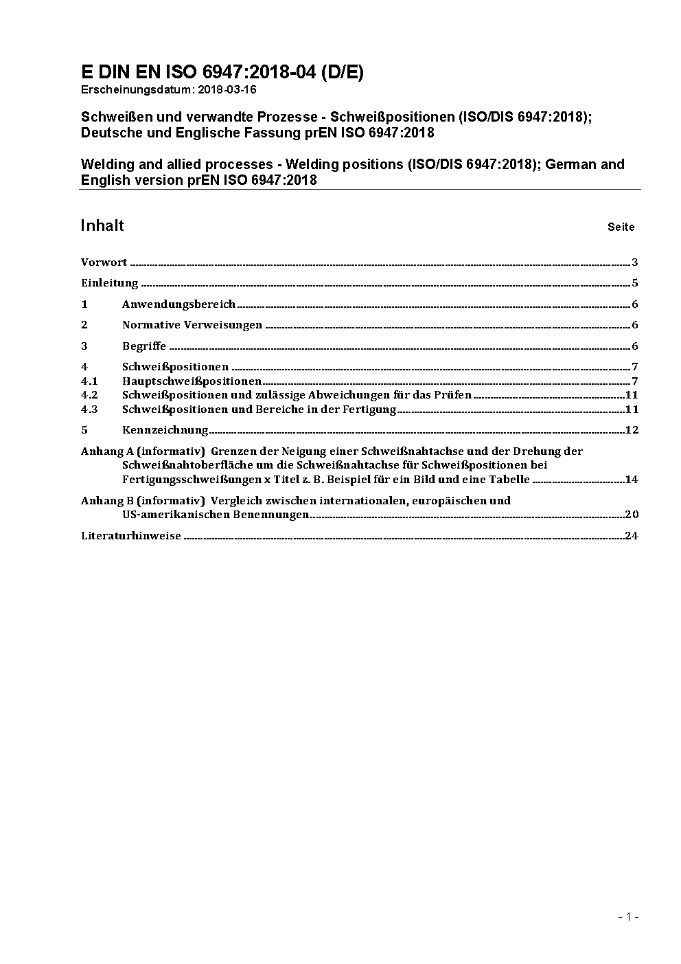 Welding and allied processes - Welding positions (ISO/DIS 6947:2018); German and English version prEN ISO 6947:2018