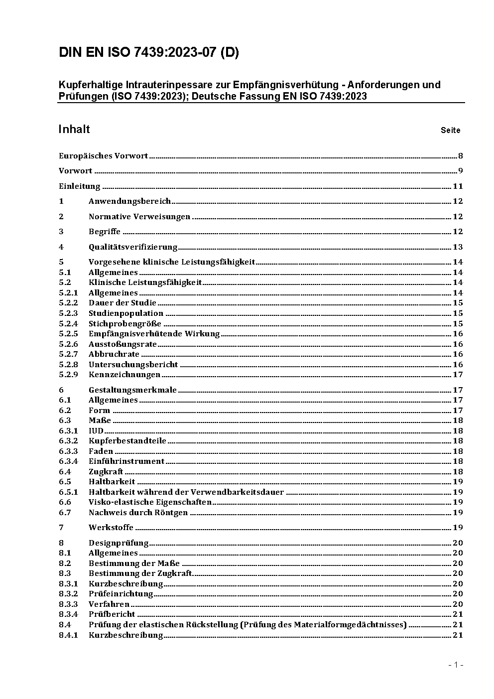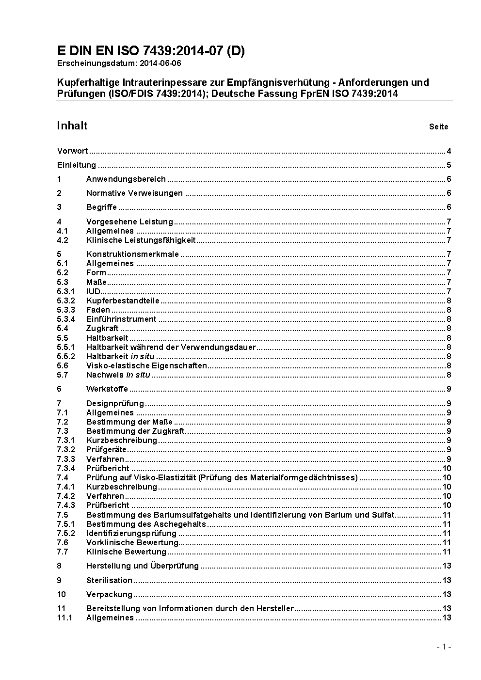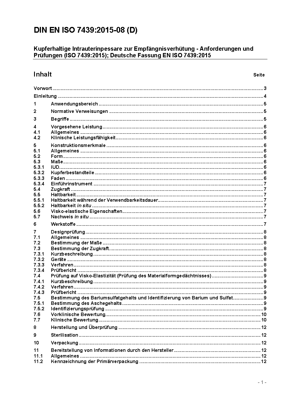 Copper-bearing intra-uterine contraceptive devices - Requirements, tests (ISO 7439:2002); German version EN ISO 7439:2002
