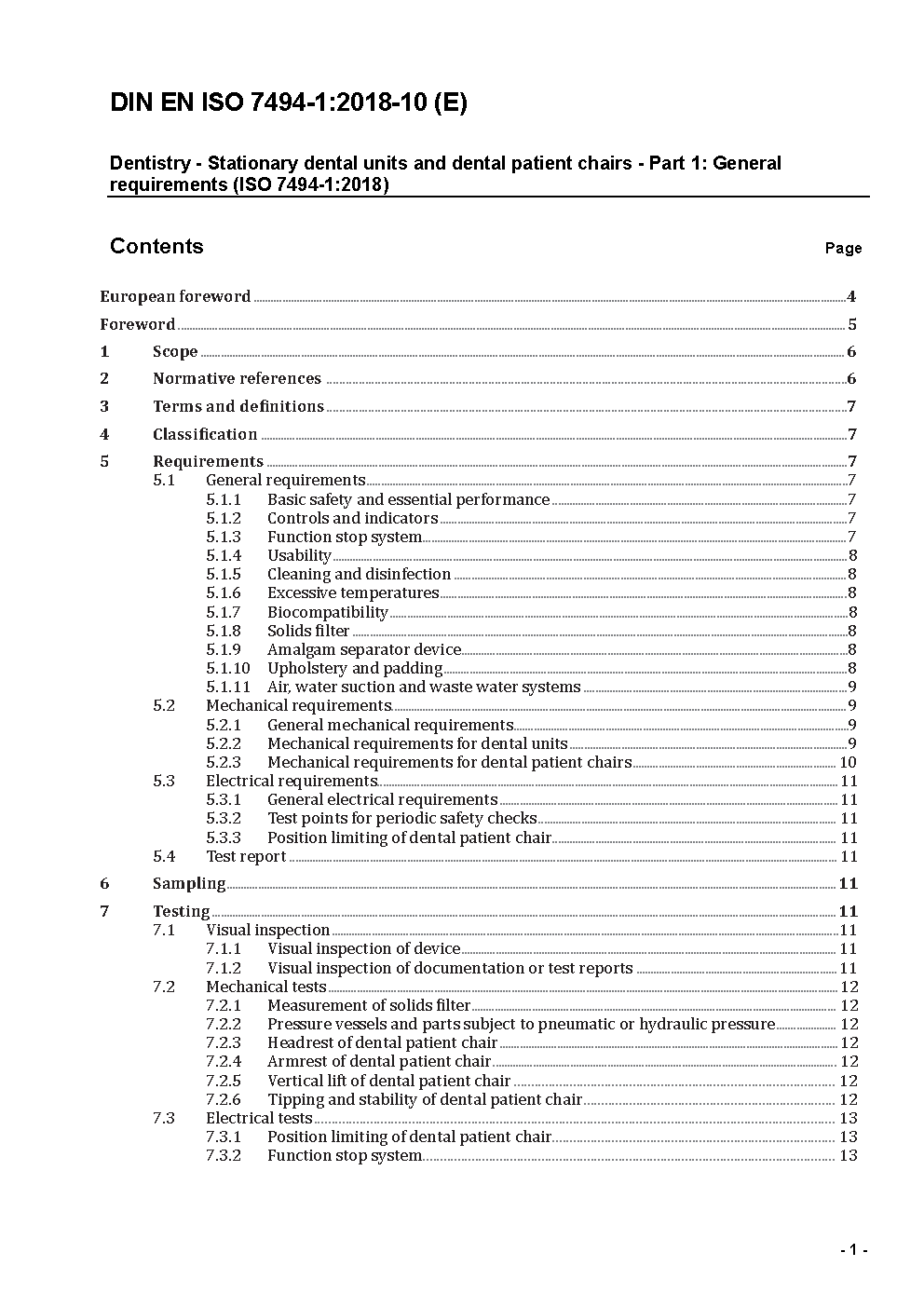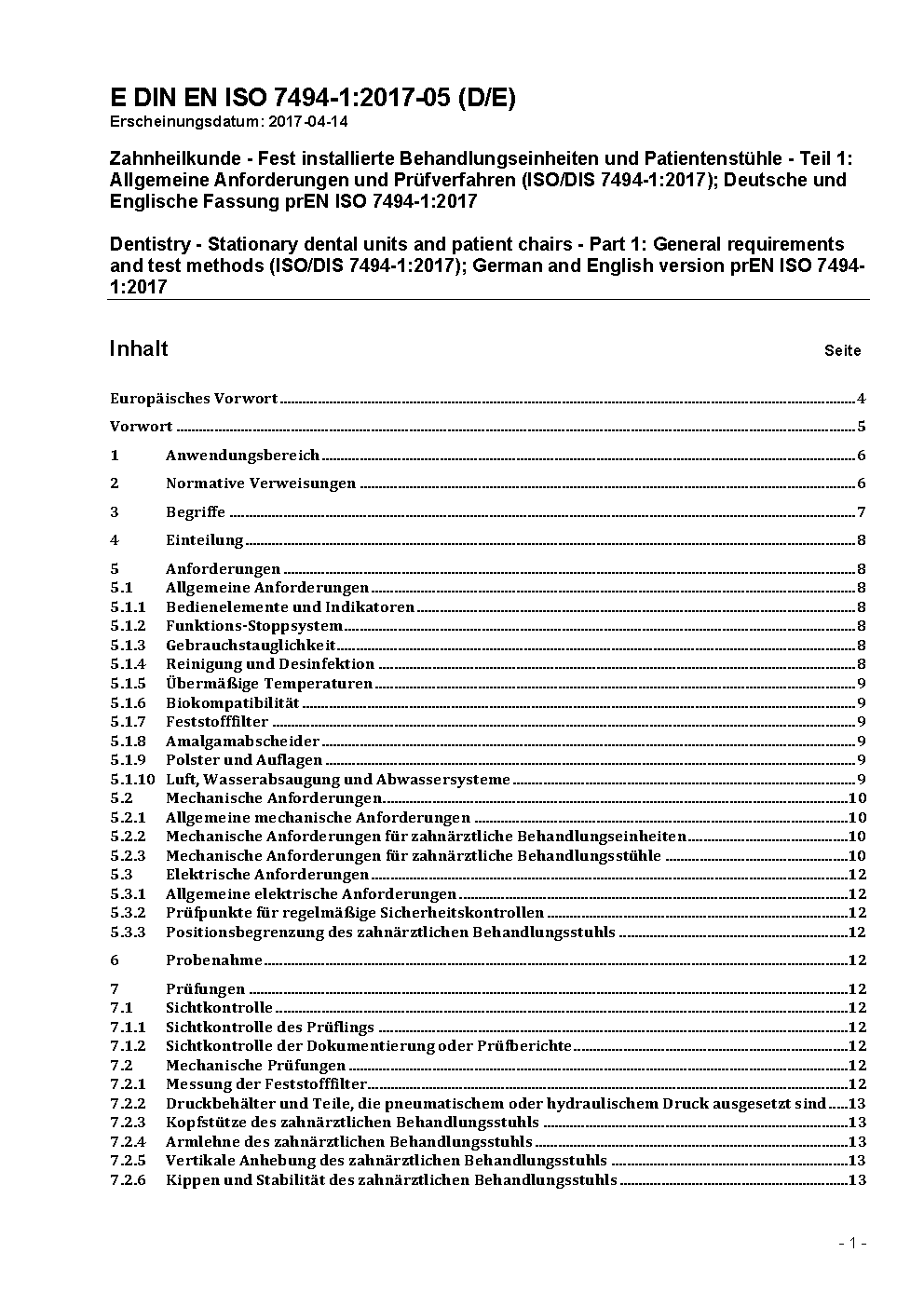 Dentistry - Dental units - Part 1: General requirements and test methods (ISO 7494-1:2011); German version EN ISO 7494-1:2011