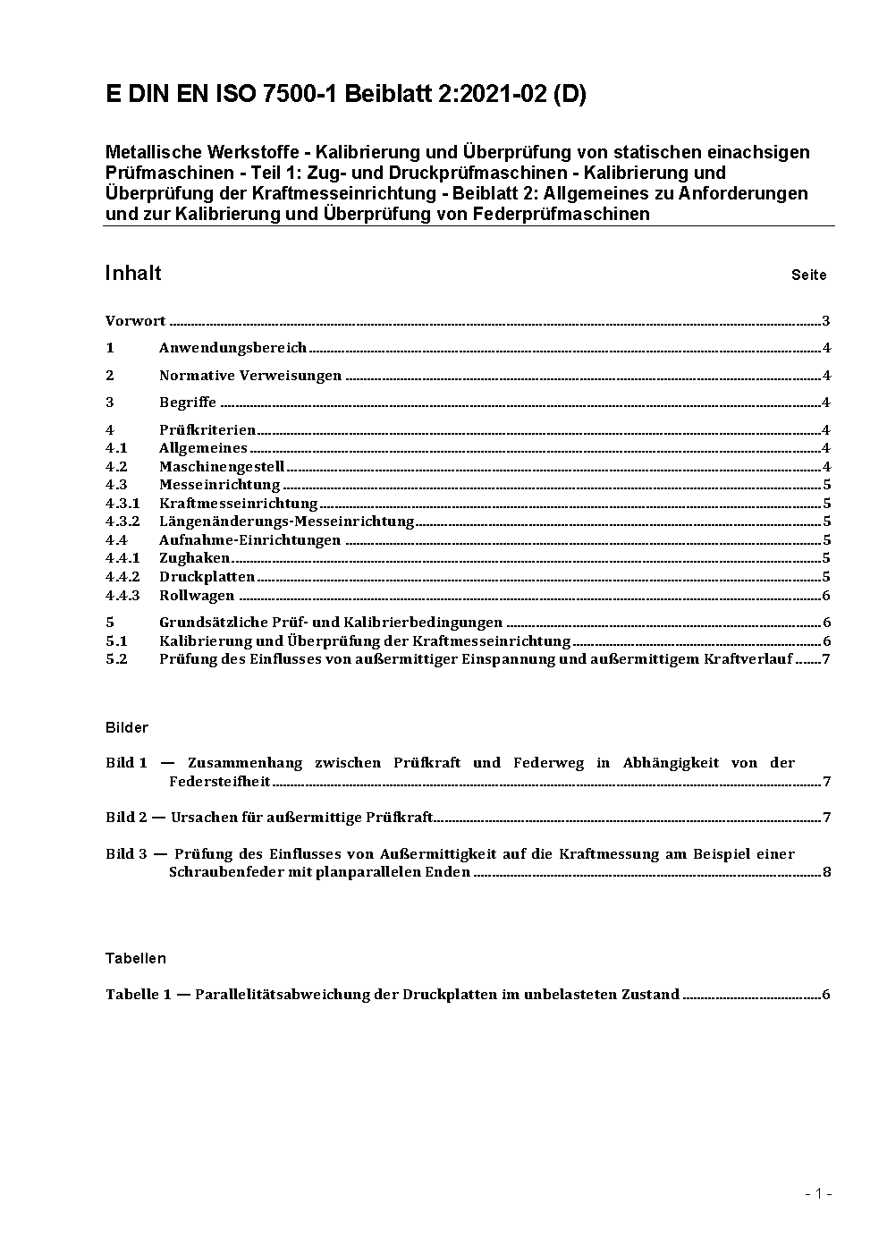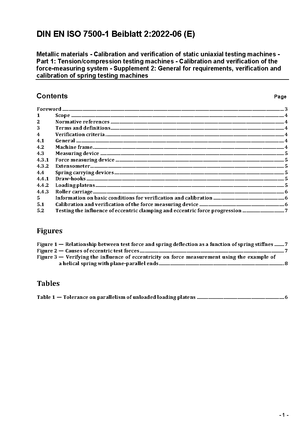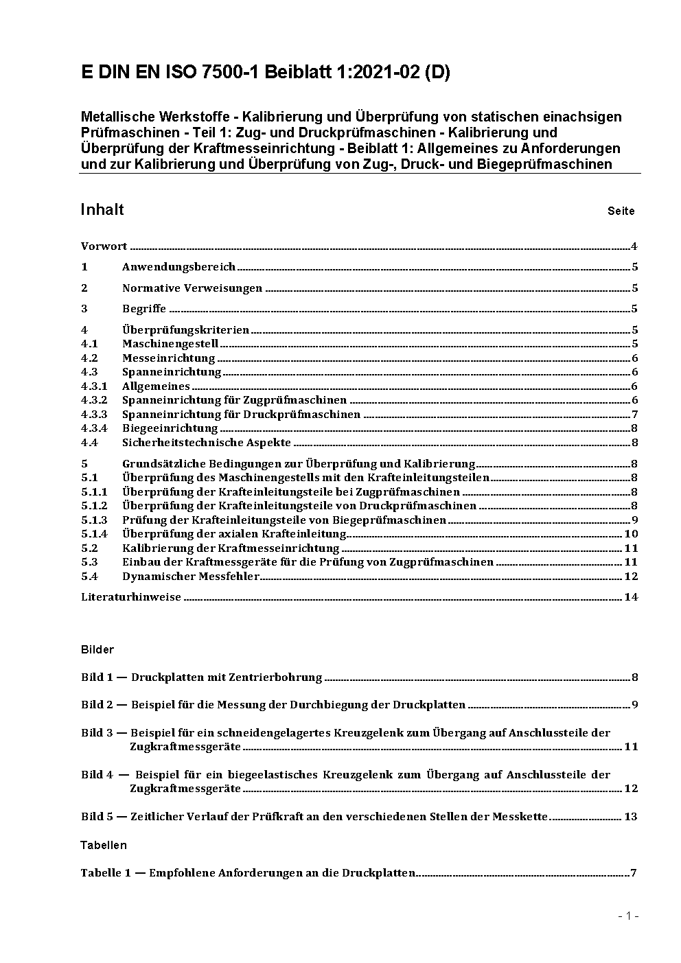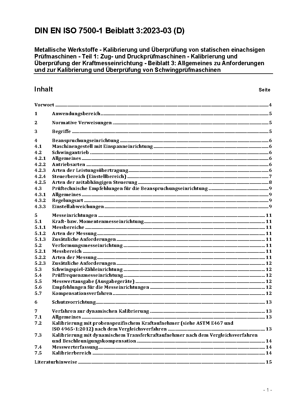 Metallic materials - Verification of static uniaxial testing machines - Part 1: Tension/compression testing machines - Verification and calibration of the force-measuring system (ISO 7500-1:2004); German version EN ISO 7500-1:2004