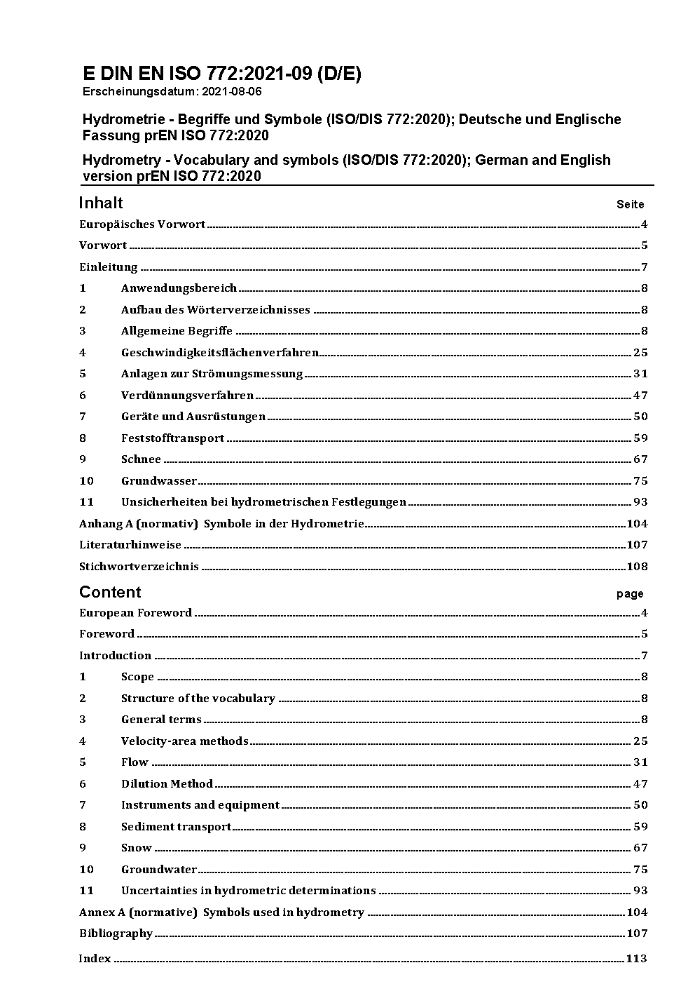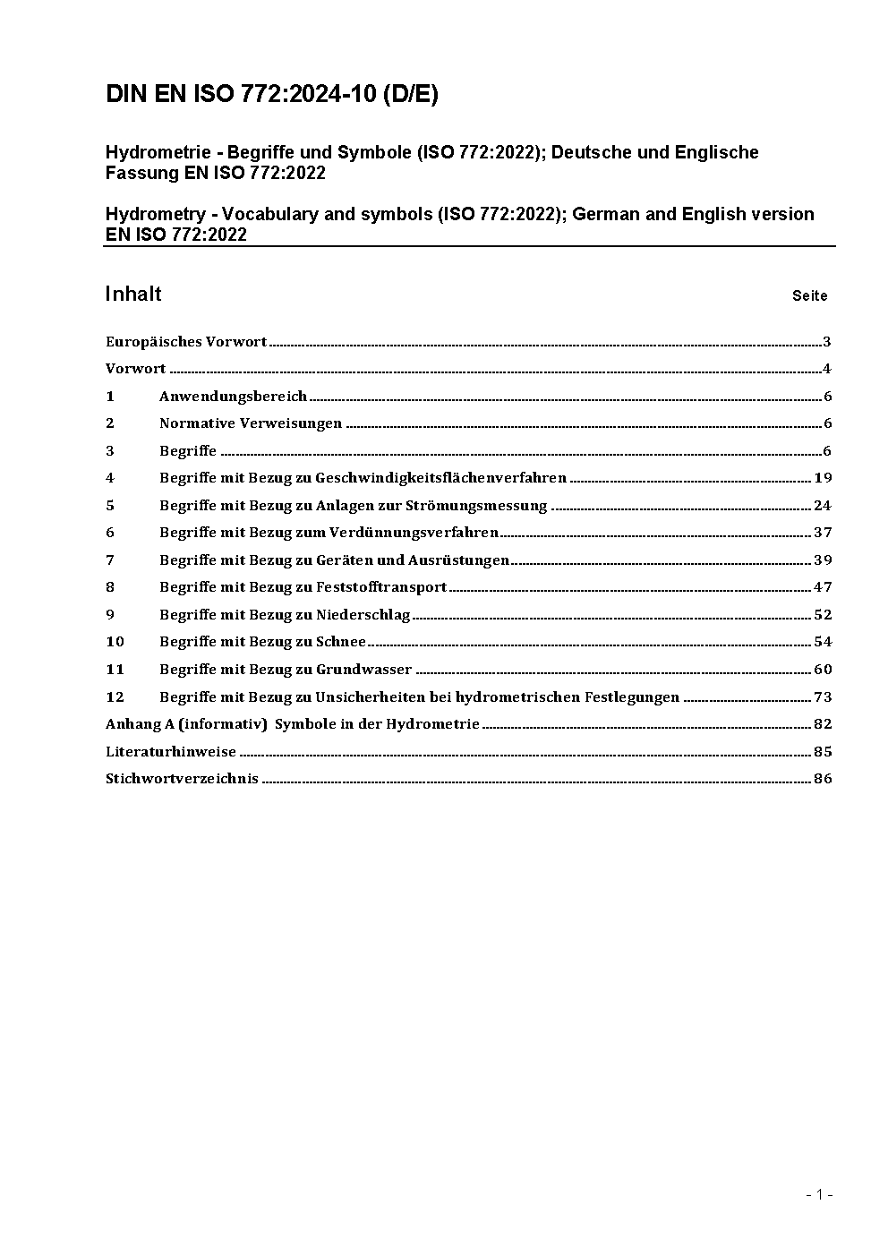 Hydrometric determinations - Vocabulary and symbols (ISO 772:1996); German version EN ISO 772:2000