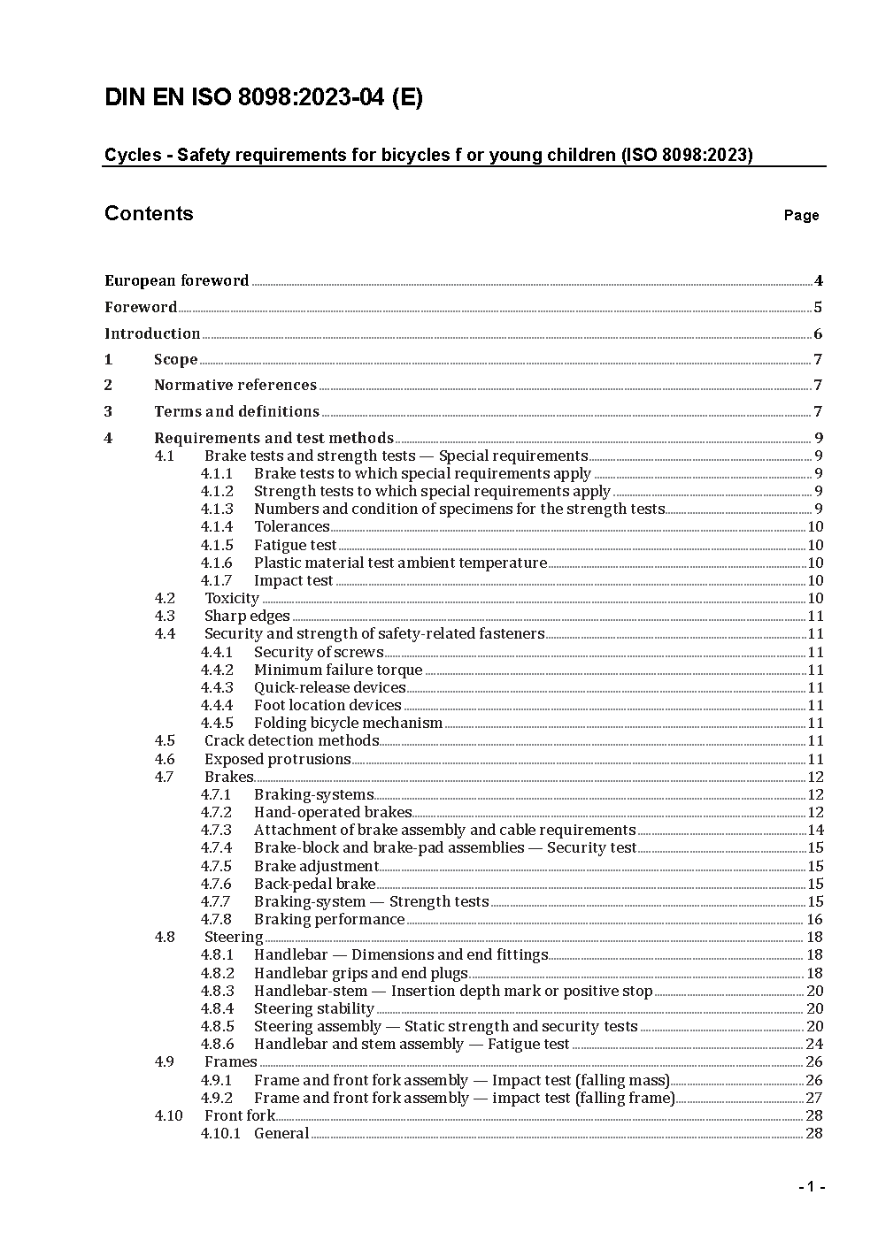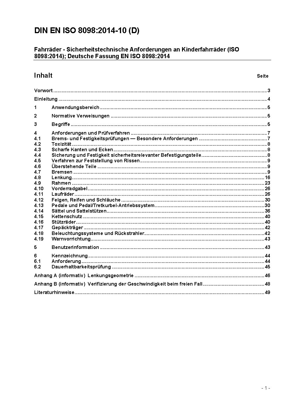 This standard specifies safety and performance requirements and test methods for the design, assembly and testing of bicycles for young children, as well as these bicycles' sub-assemblies. It also provides guidelines for instructions on the use and care of the bicycles.This standard is applicable to bicycles with a maximum saddle height of more than 435 mm and less than 635 mm, propelled by a transmitted drive to the rear wheel.It is not applicable to special bicycles intended for stunting (e. g. BMX bicycles).