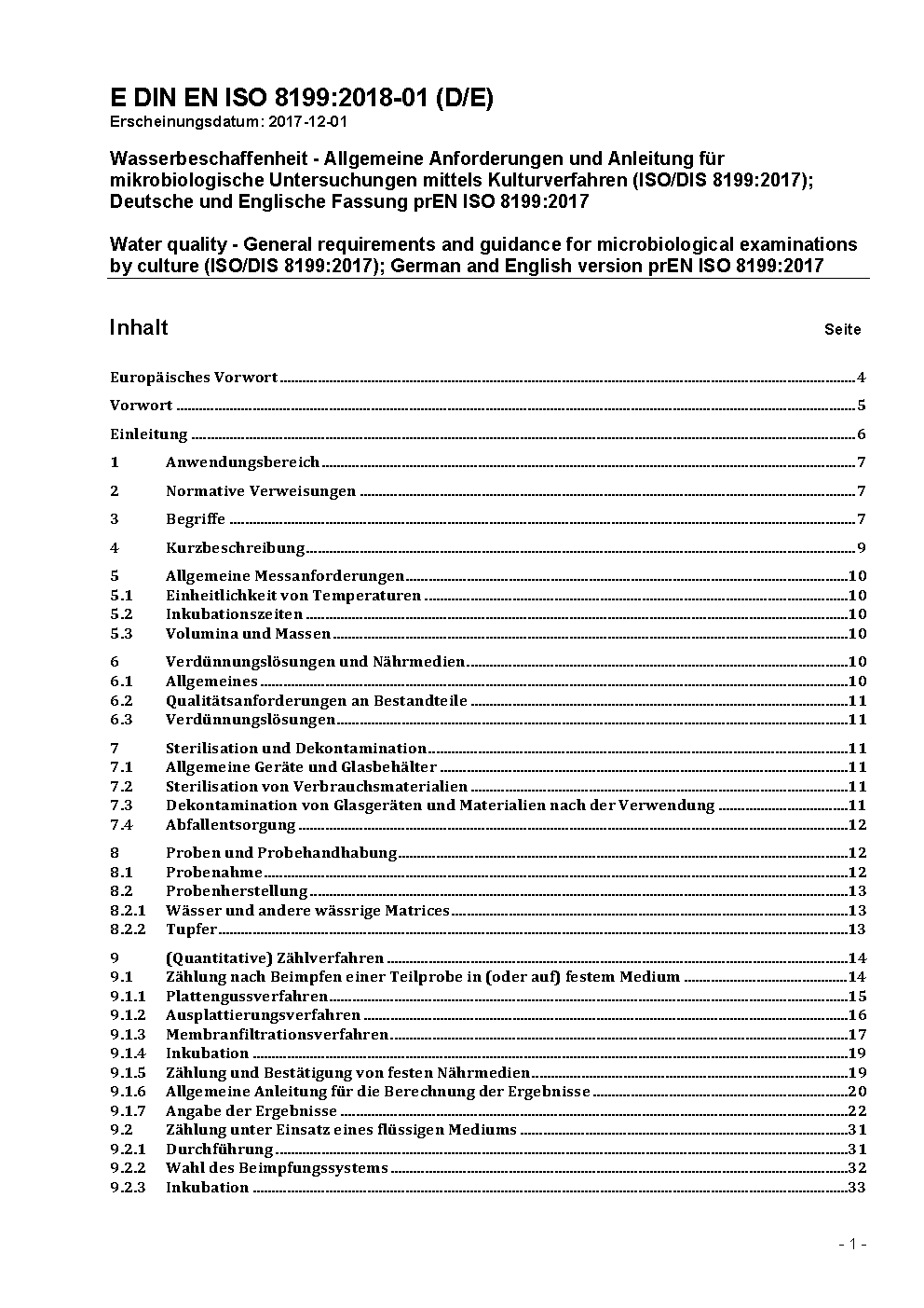 Water quality - General guidance on the enumeration of micro-organisms by culture (ISO 8199:2005); German version EN ISO 8199:2007