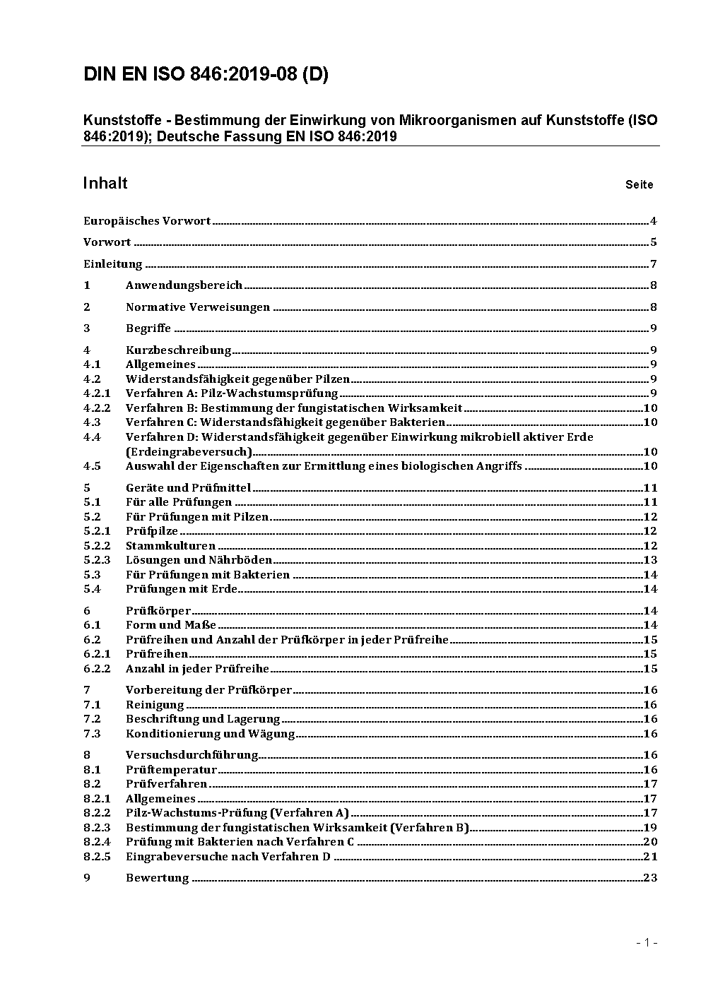 Plastics - Evaluation of the action of microorganisms (ISO 846:1997); German version EN ISO 846:1997