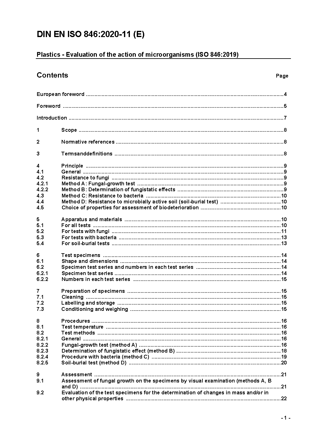 The document specifies methods for determining the deterioration of plastics due to the action of fungi and bacteria and soil microorganisms. The aim is not to determine the biodegradability of plastics.