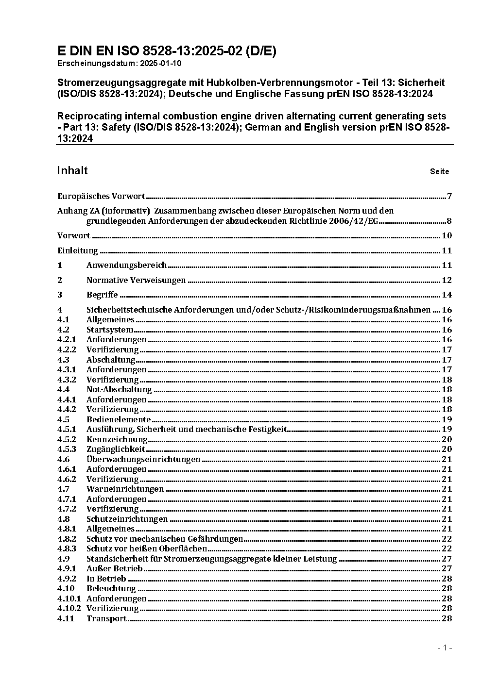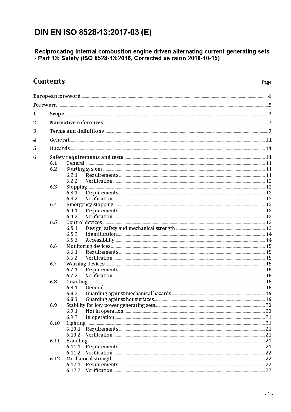 Reciprocating internal combustion engine driven alternating current generating sets - Part 13: Safety (ISO 8528-13:2016, Corrected version 2016-10-15); German version EN ISO 8528-13:2016