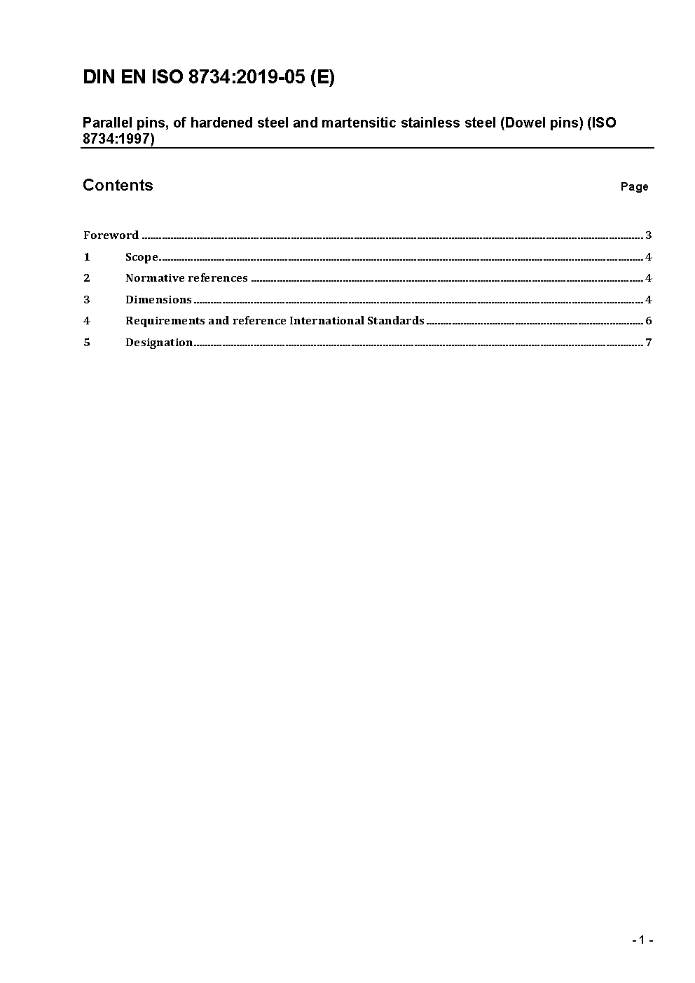 Parallel pins, of hardened steel or martensitic stainless steel (Dowel pins) (ISO 8734:1997)