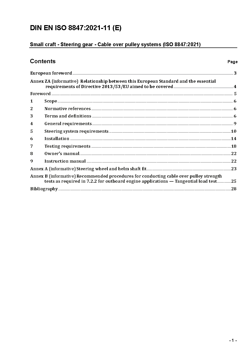 This International Standard specifies the minimum level of requirements for operation, construction and installation of cable and pulley steering systems on sailing craft of hull length up to 24 m, with or without an auxiliary engine. This International Standard sets requirements for the design and construction of all components of a steering system from the wheel to, and including, the steering arm. It applies only to cable and pulley steering systems, whether for pedestal or bulkhead types. The design and specifications for the rudder shaft and rudder blade are within the province of the naval architect and are assumend to be appropriate to the size and speed of the boat.