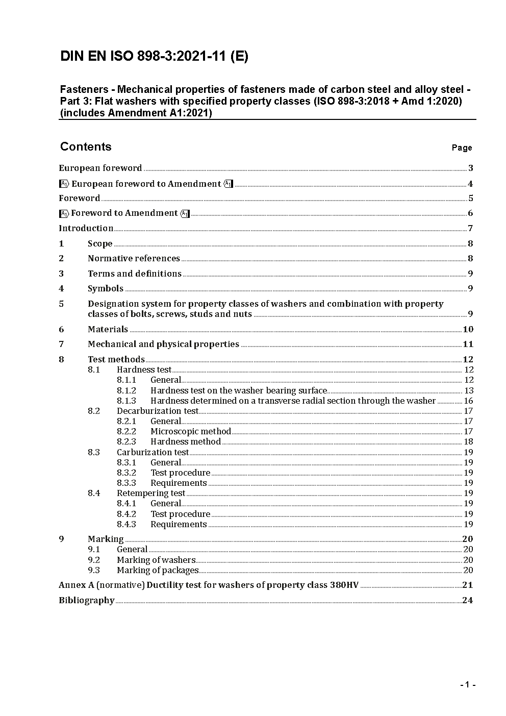Fasteners - Mechanical properties of fasteners made of carbon steel and alloy steel - Part 3: Flat washers with specified property classes (ISO 898-3:2018 + Amd 1:2020); German version EN ISO 898-3:2018 + A1:2021