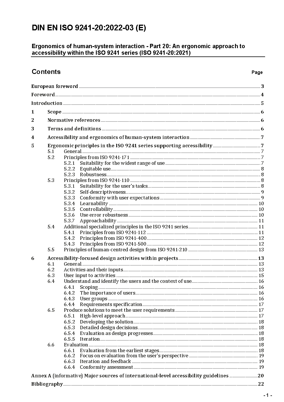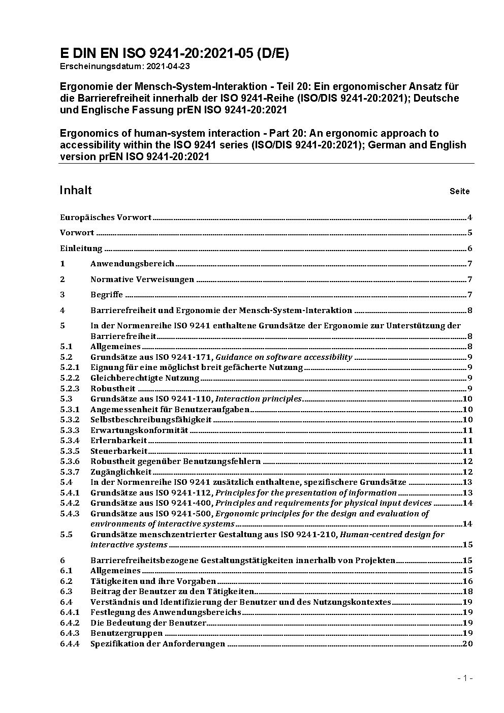 Ergonomie der Mensch-System-Interaktion - Teil 20: Leitlinien für die Zugänglichkeit der Geräte und Dienste in der Informations- und Kommunikationstechnologie (ISO 9241-20:2008); Deutsche Fassung prEN ISO 9241:2008