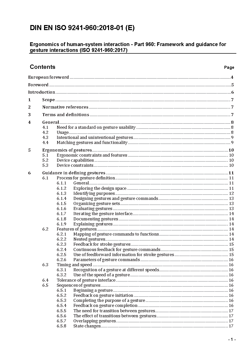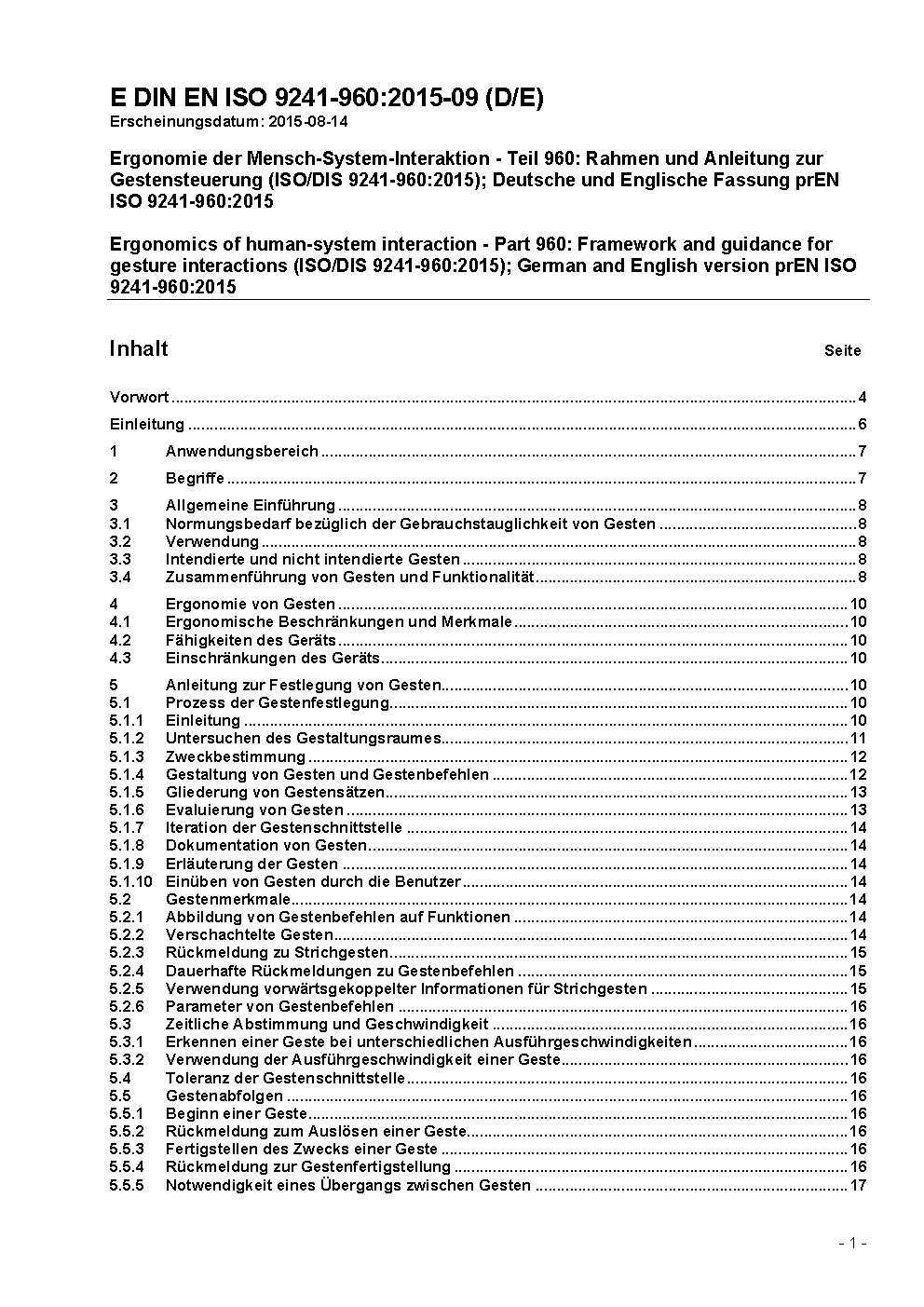 Ergonomics of human-system interaction - Part 960: Framework and guidance for gesture interactions (ISO/DIS 9241-960:2015); German and English version prEN ISO 9241-960:2015