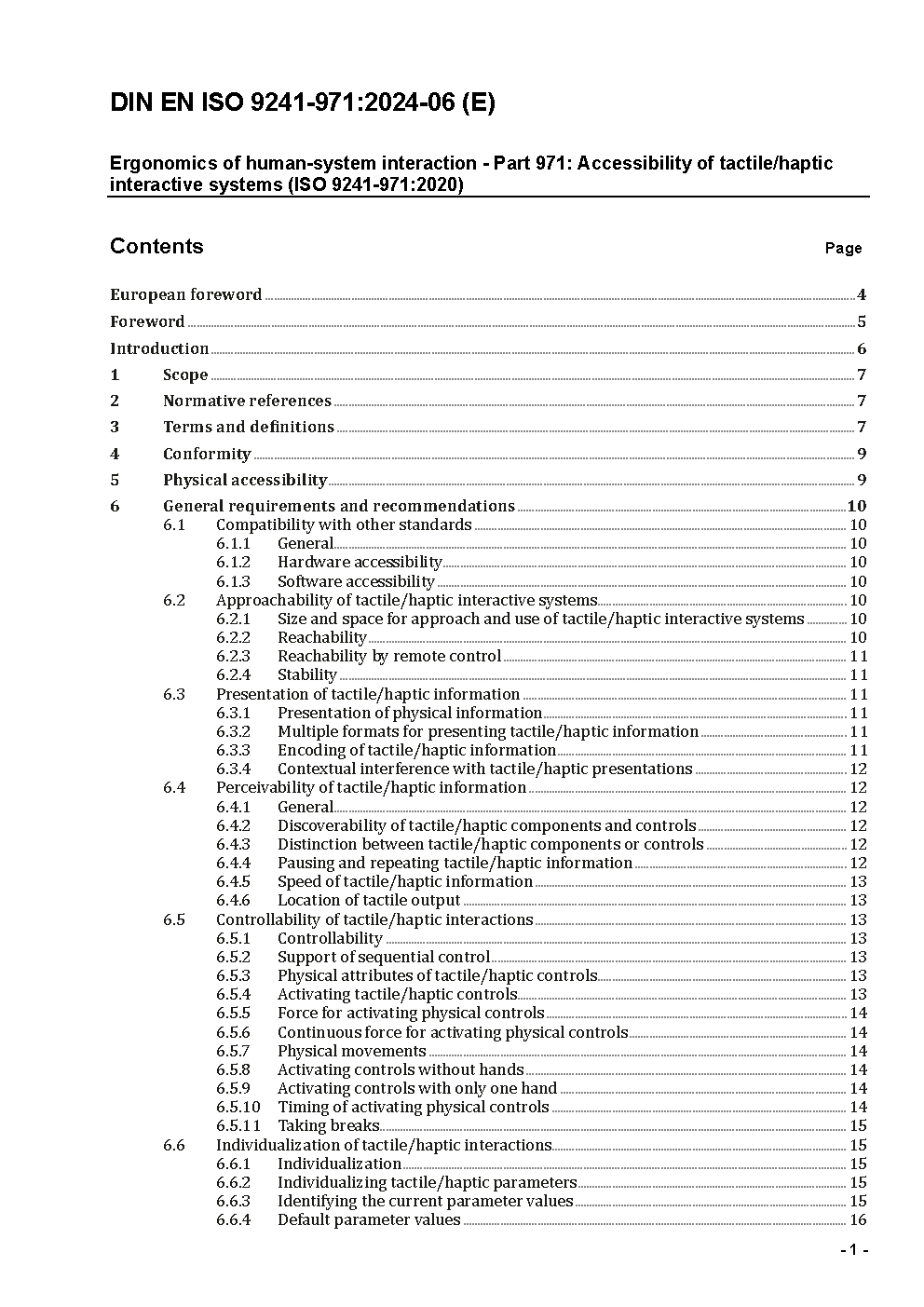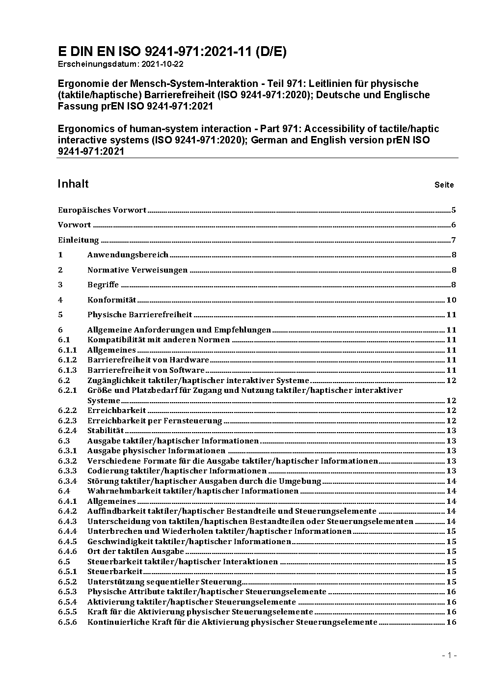 Ergonomics of human-system interaction - Part 971: Accessibility of tactile/haptic interactive systems (ISO 9241-971:2020); German and English version prEN ISO 9241-971:2021