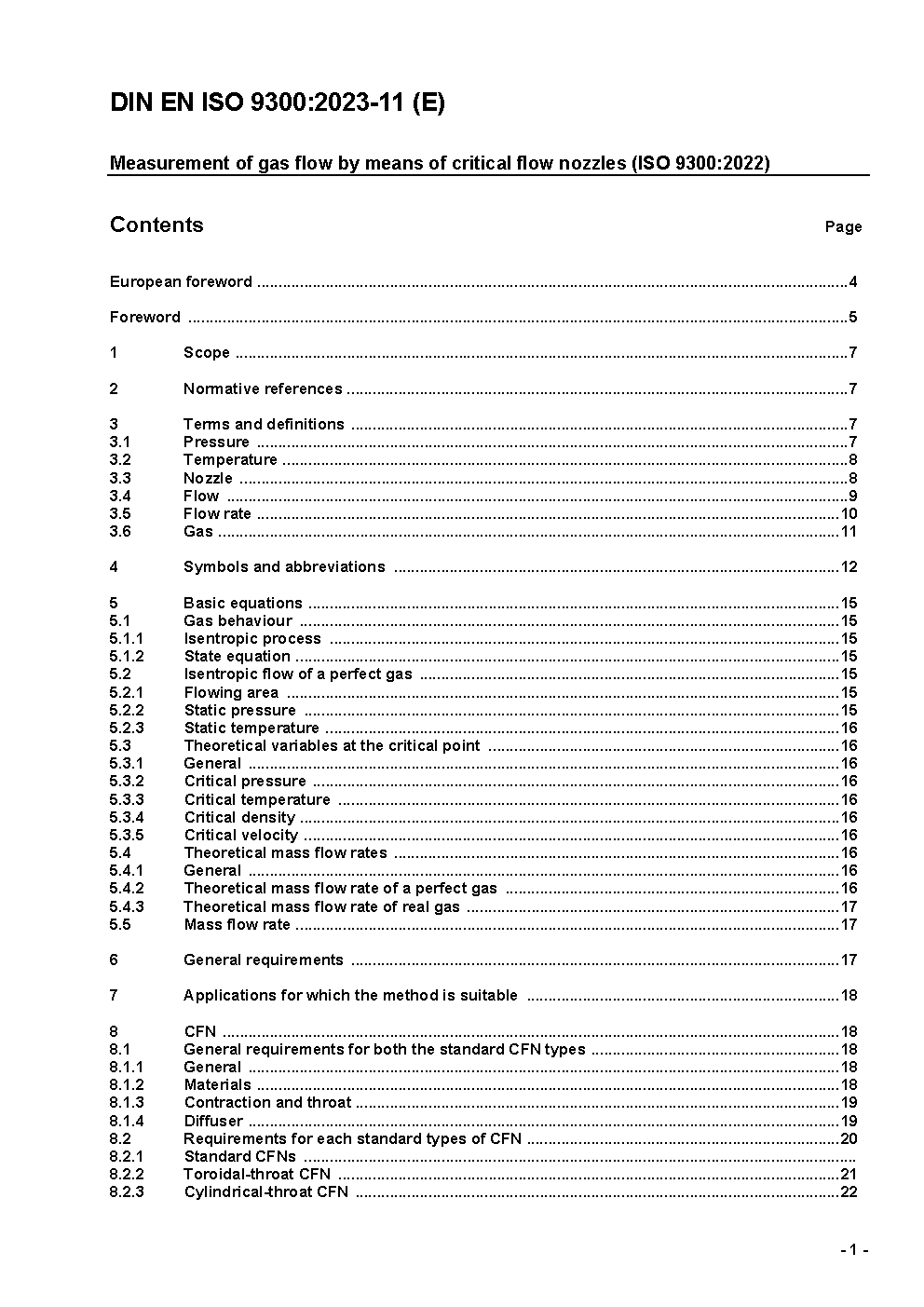 The project specifies the geometry and method of use (installation in a system and operating conditions) of critical flow Venturi nozzles used to determine the mass flow-rate of a gas flowing through a system. It also gives the information necessary for calculating the flow-rate and its associated uncertainty.