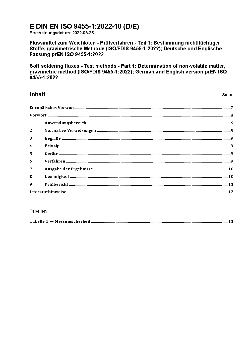 Soft soldering fluxes - Test methods - Part 1: Determination of non-volatile matter, gravimetric method (ISO 9455-1:2022); German version EN ISO 9455-1:2023