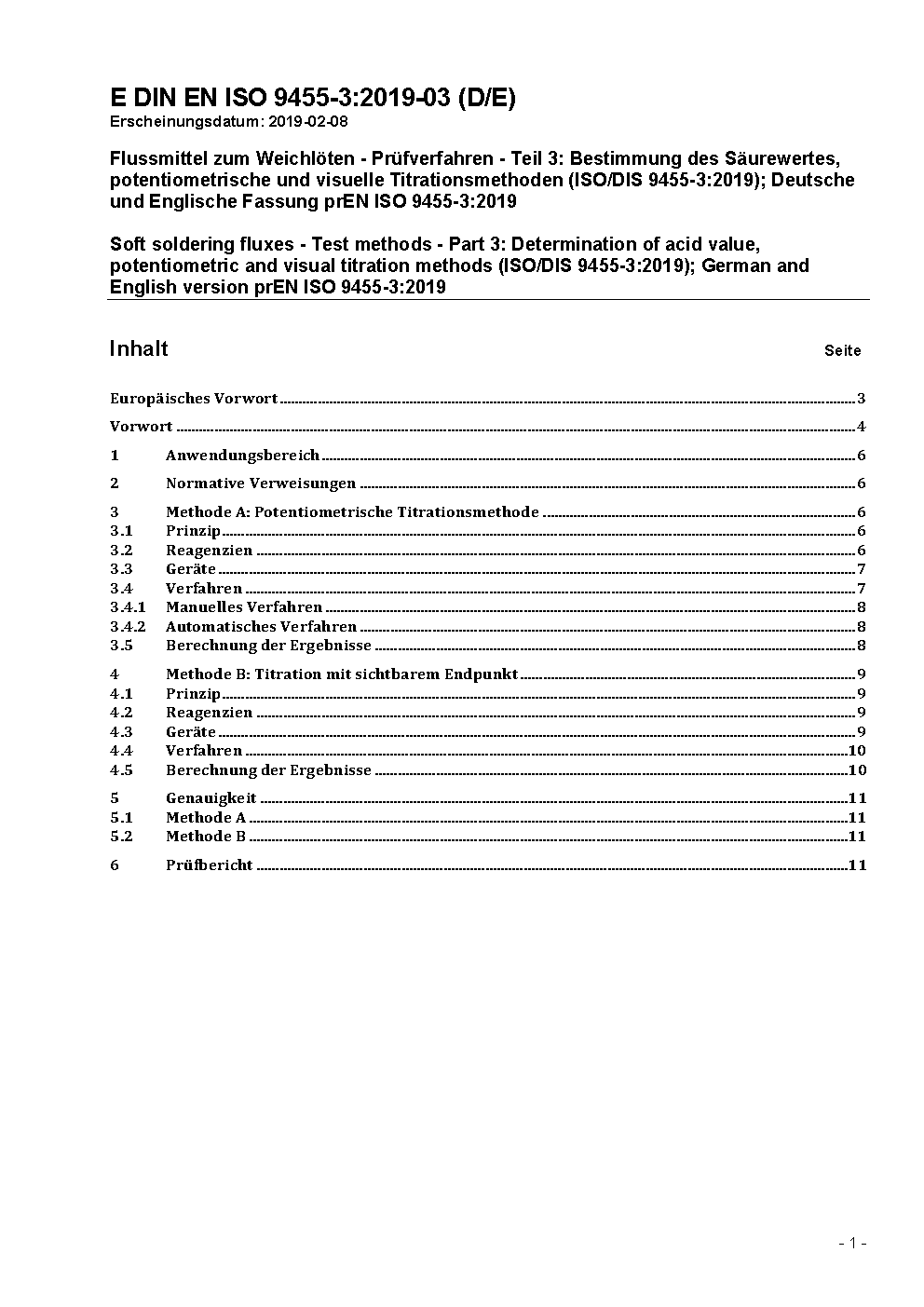 Soft soldering fluxes - Test methods - Part 3: Determination of acid value, potentiometric and visual titration methods (ISO/DIS 9455-3:2019); German and English version prEN ISO 9455-3:2019
