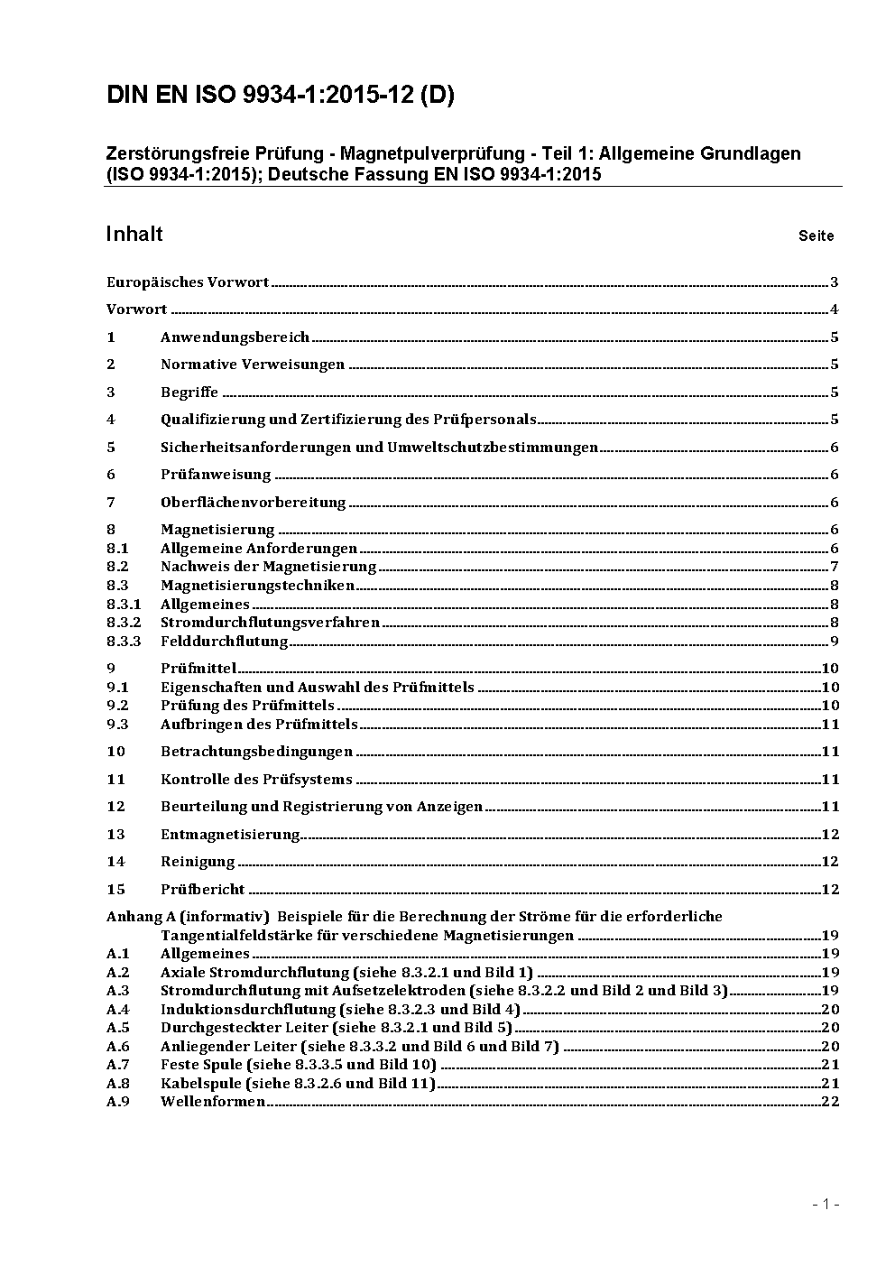 Prévu pour remplacer DIN EN ISO 9934-1 (2002-03).