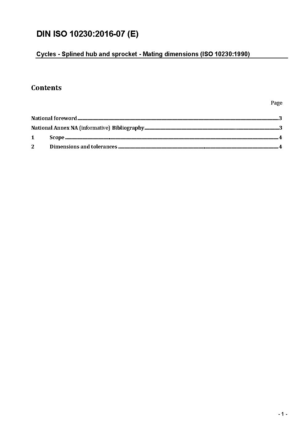This document specifies mating dimensions and tolerances for the sprocket and splines of the hub of an internally geared hub or a backpedal brake hub on a cycle.