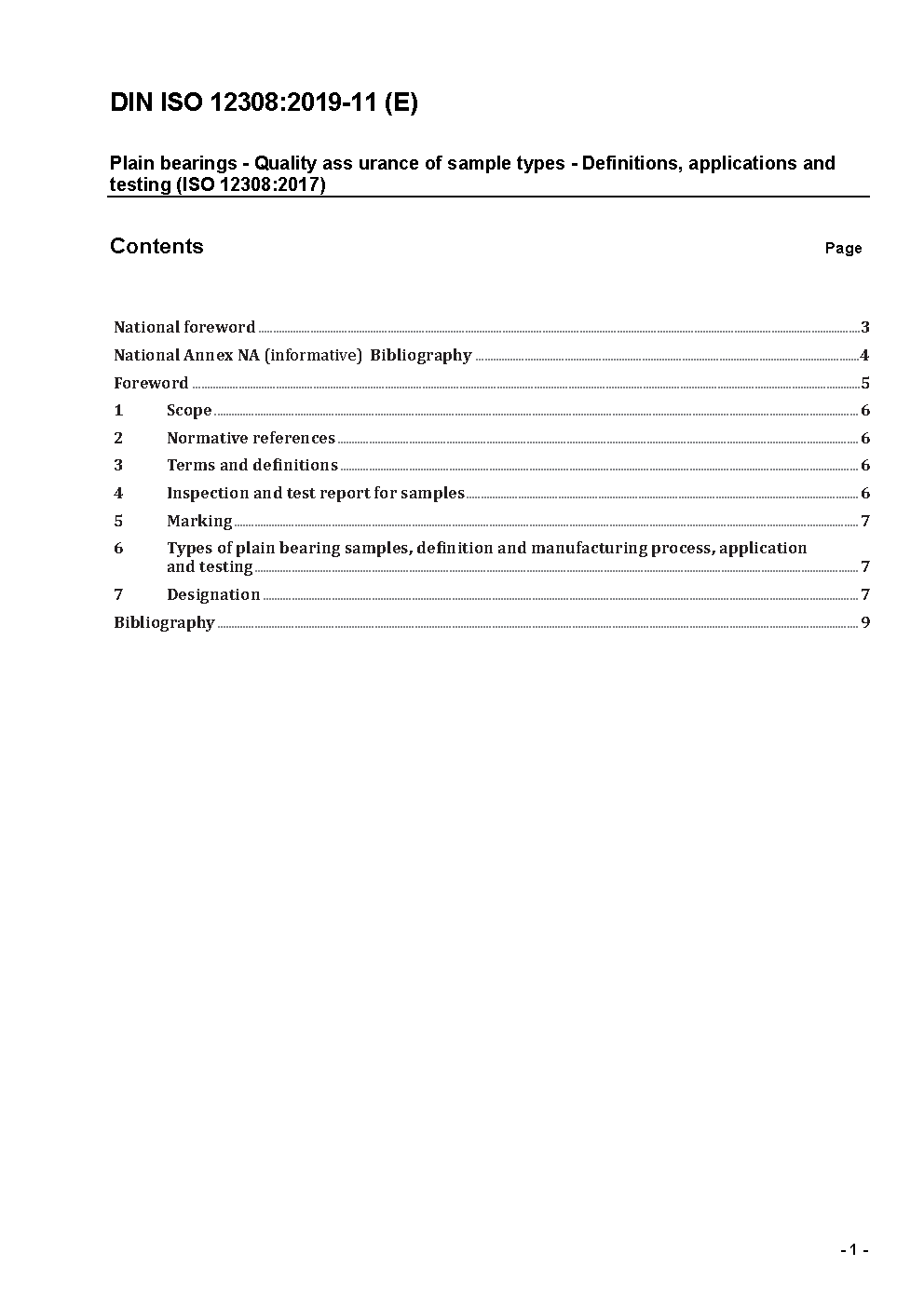 Plain bearings - Quality assurance - Sample types; definitions, applications and testing (ISO 12308:1994)