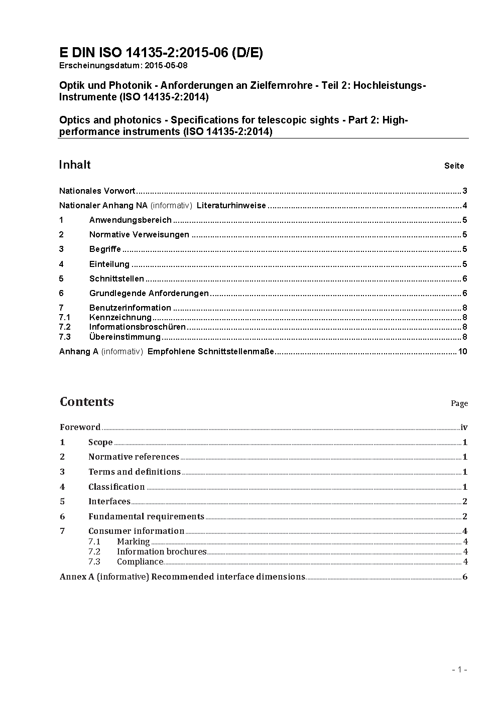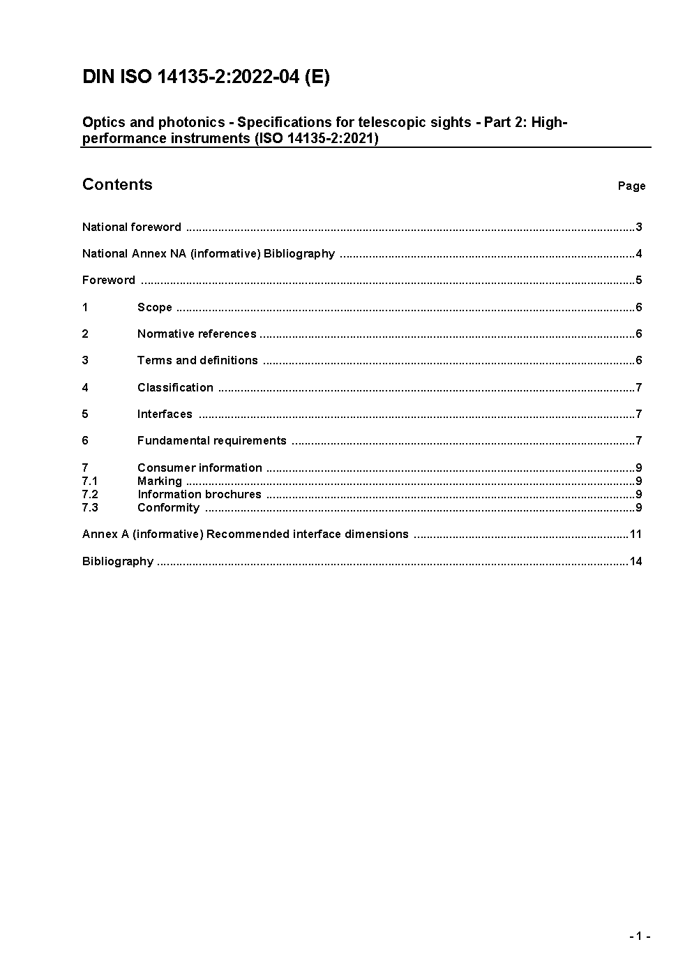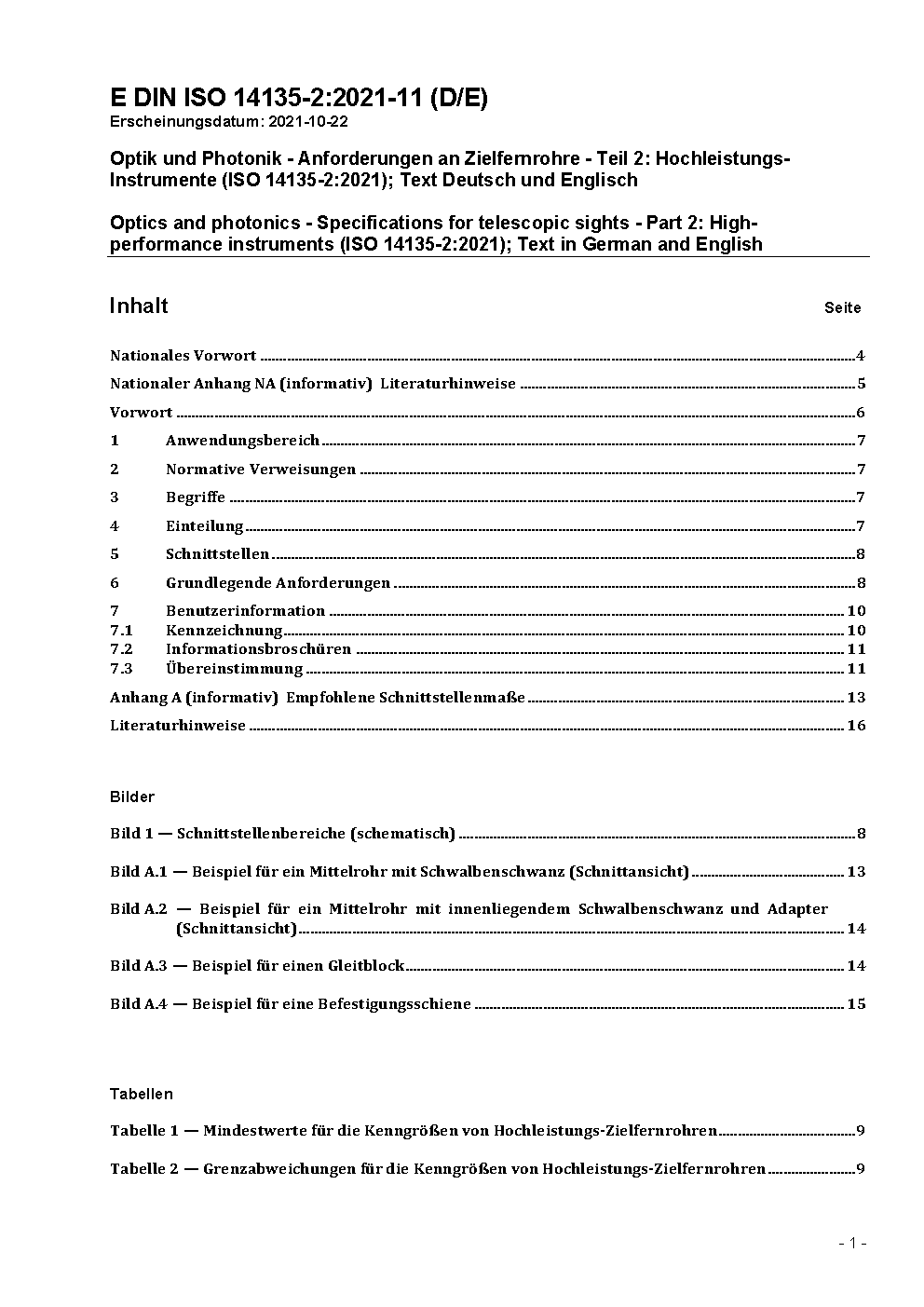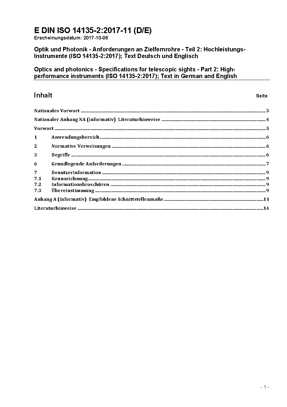 Optics and photonics - Specifications for telescopic sights - Part 2: High-performance instruments (ISO 14135-2:2014)