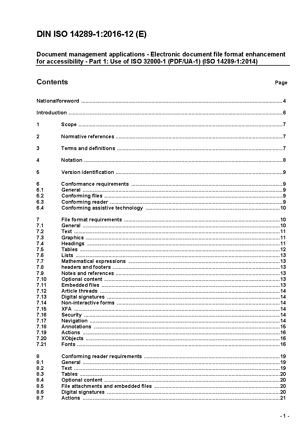 Document management applications - Electronic document file format enhancement for accessibility - Part 1: Use of ISO 32000-1 (PDF/UA-1) (ISO 14289-1:2014)