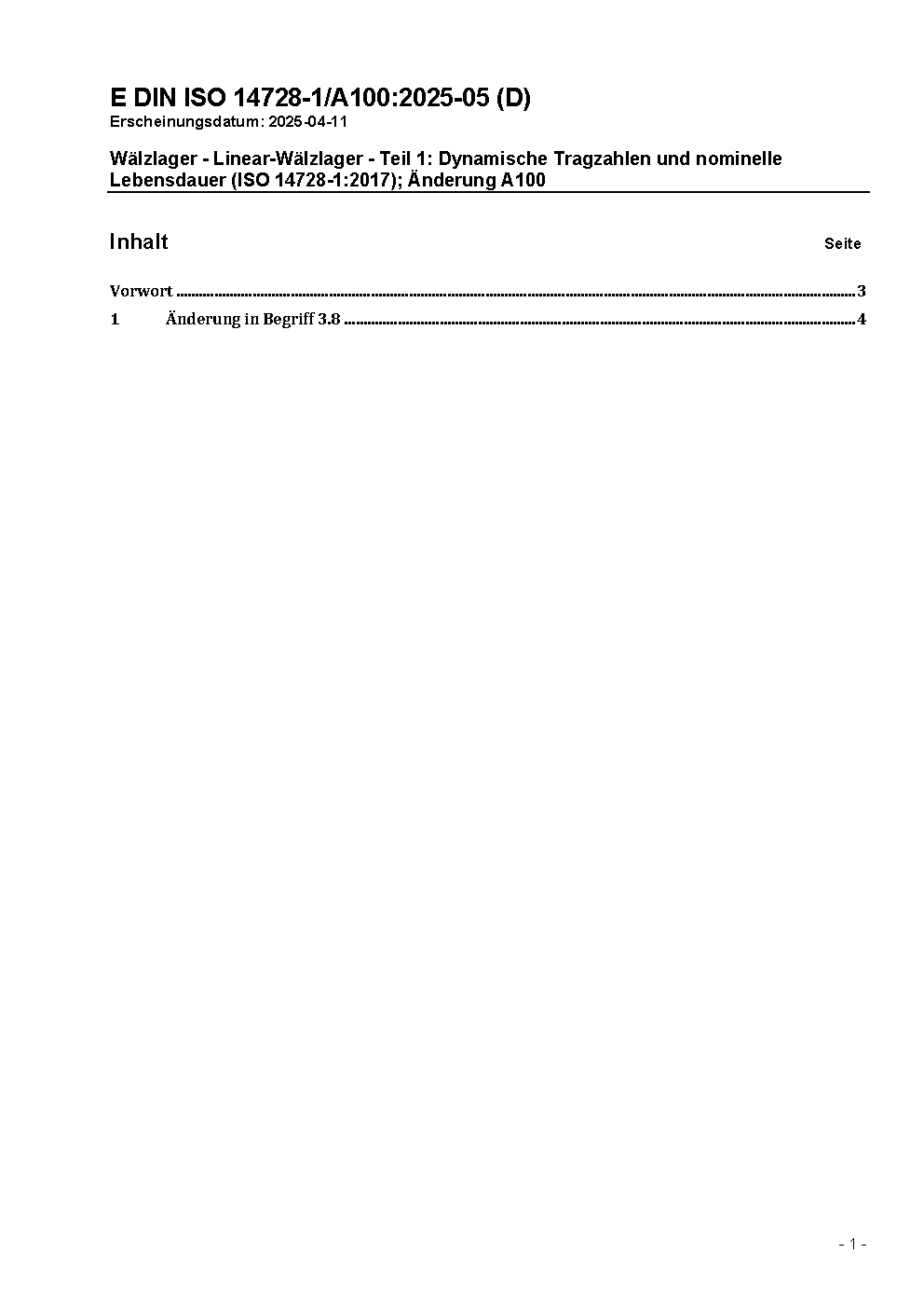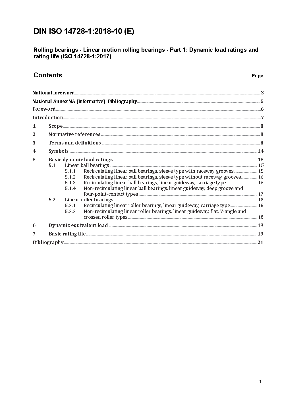 Rolling bearings - Linear motion rolling bearings - Part 1: Dynamic load ratings and rating life (ISO 14728-1:2017); Text in German and English