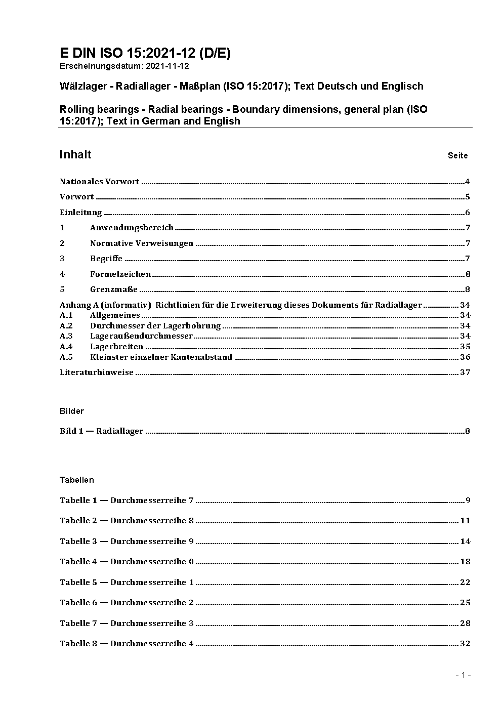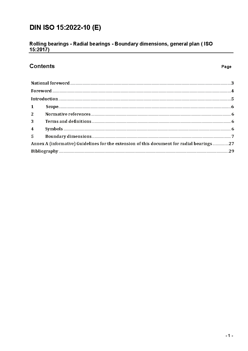 Rolling bearings - Radial bearings - Boundary dimensions, general plan (ISO 15:2017); Text in German and English