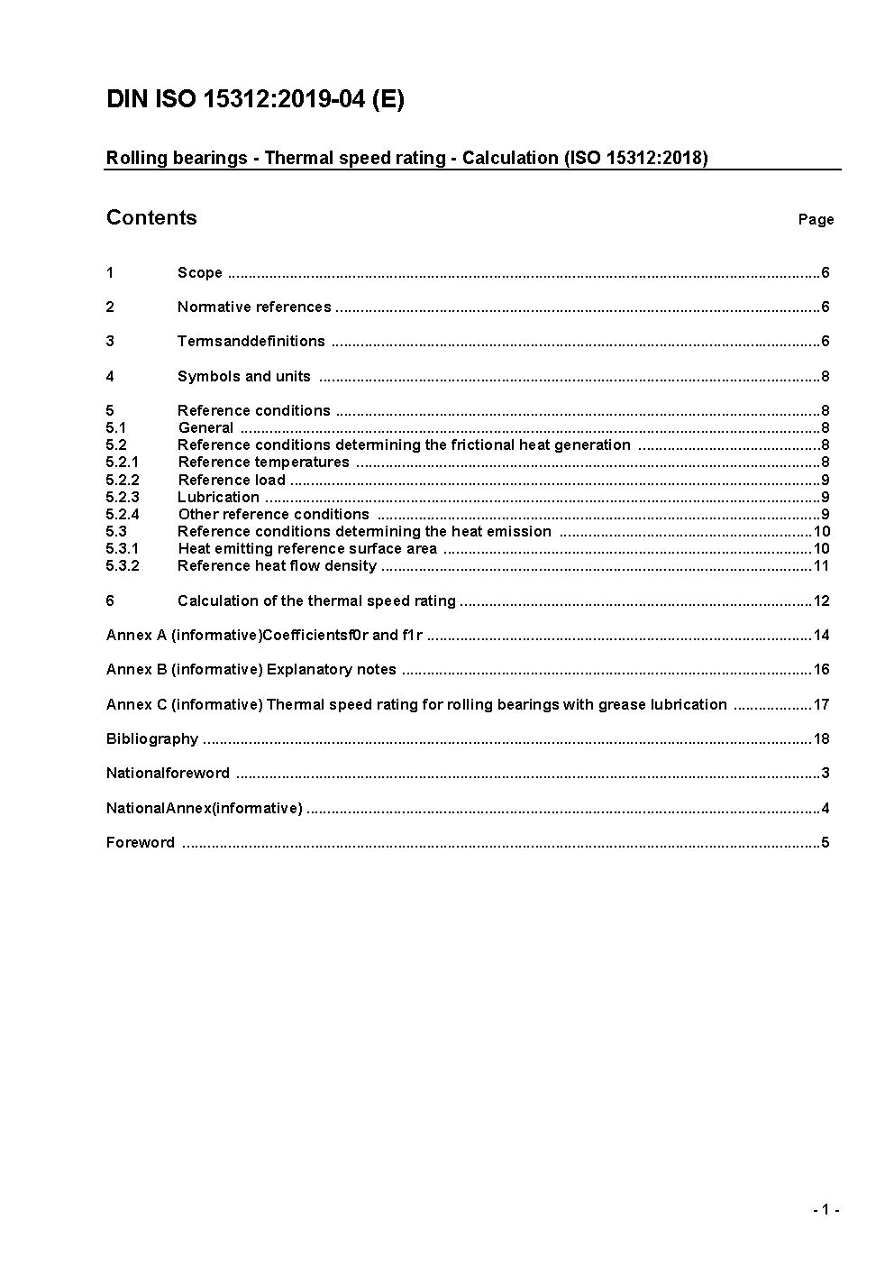 Rolling bearings - Thermal speed rating - Calculation and coefficients (ISO 15312:2003)