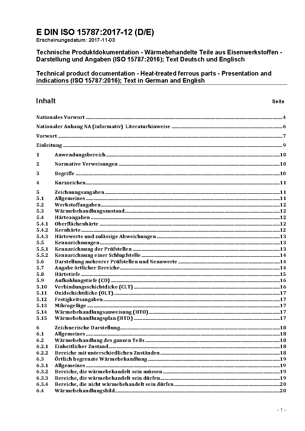 Technical product documentation - Heat-treated ferrous parts - Presentation and indications (ISO 15787:2016); Text in German and English