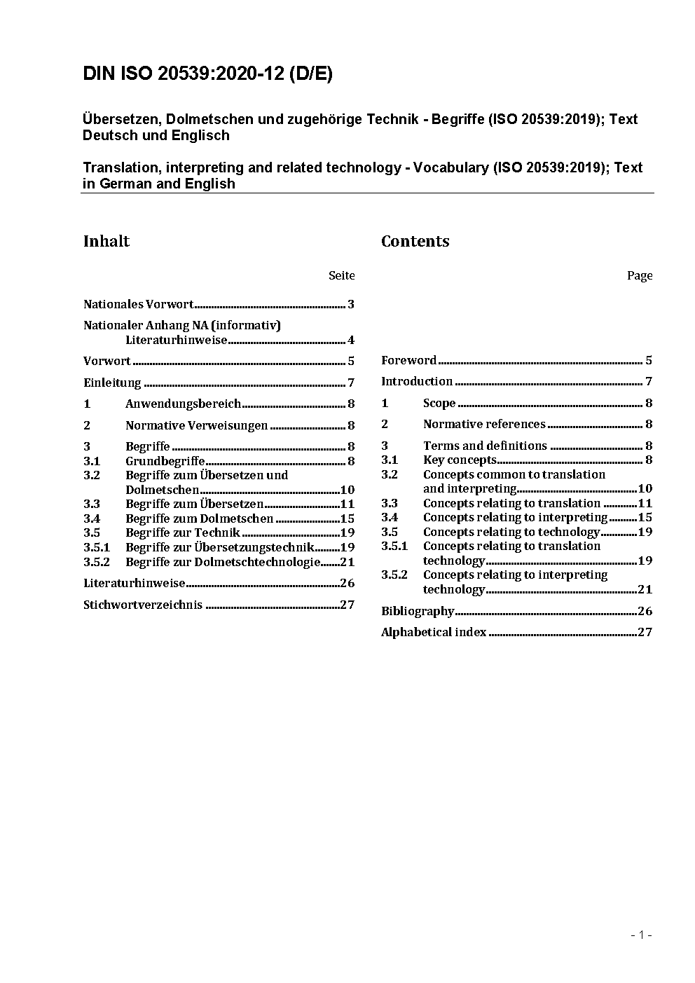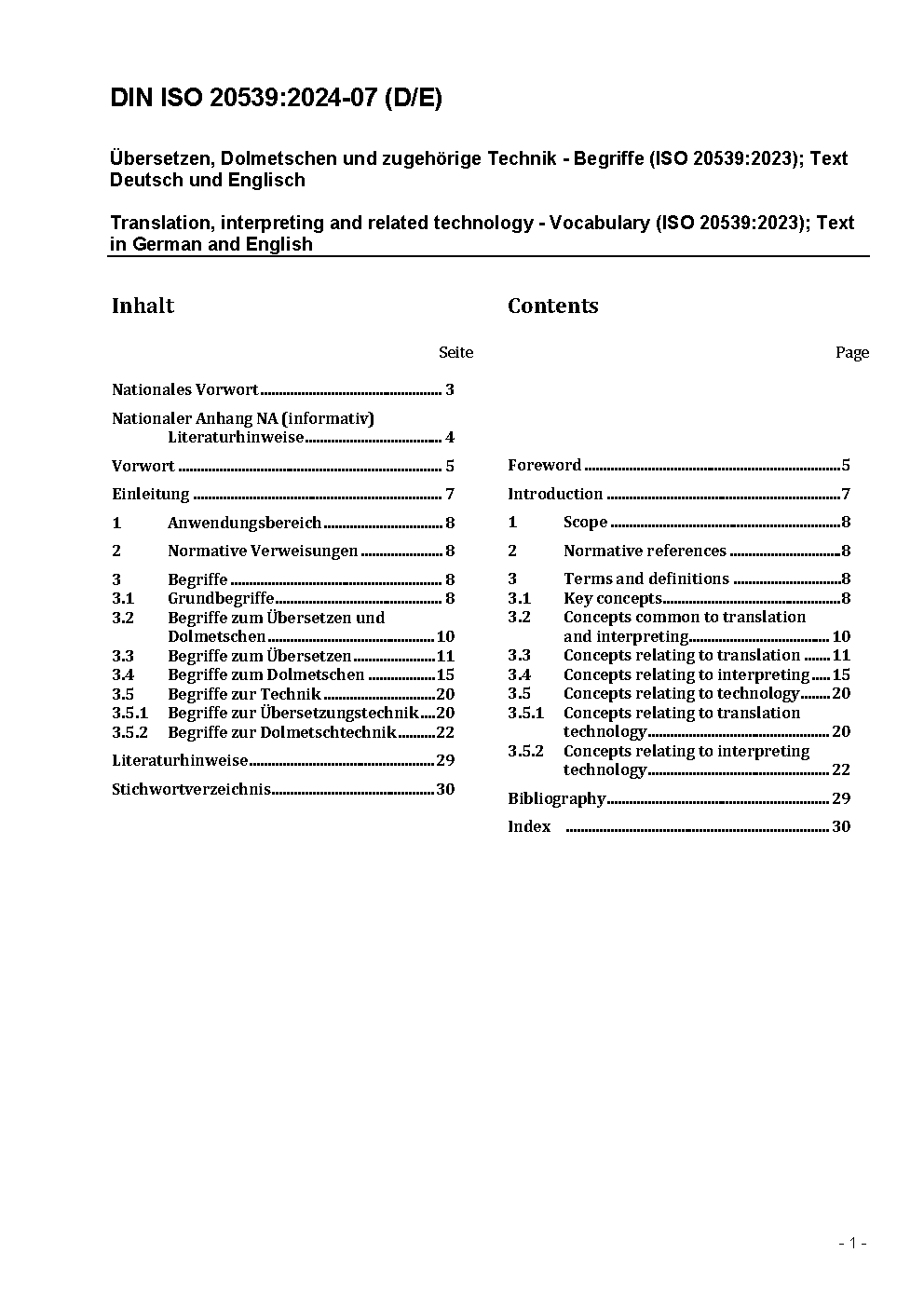 Translation, interpreting and related technology - Vocabulary (ISO 20539:2023); Text in German and English