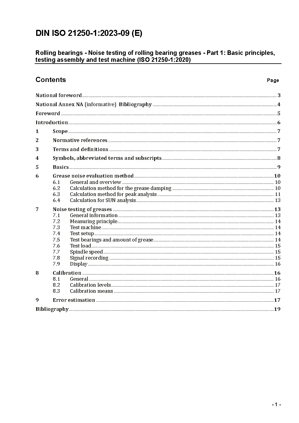 Rolling bearings - Noise testing of rolling bearing greases - Part 1: Basic principles, testing assembly and test machine (ISO 21250-1:2020); Text in German and English