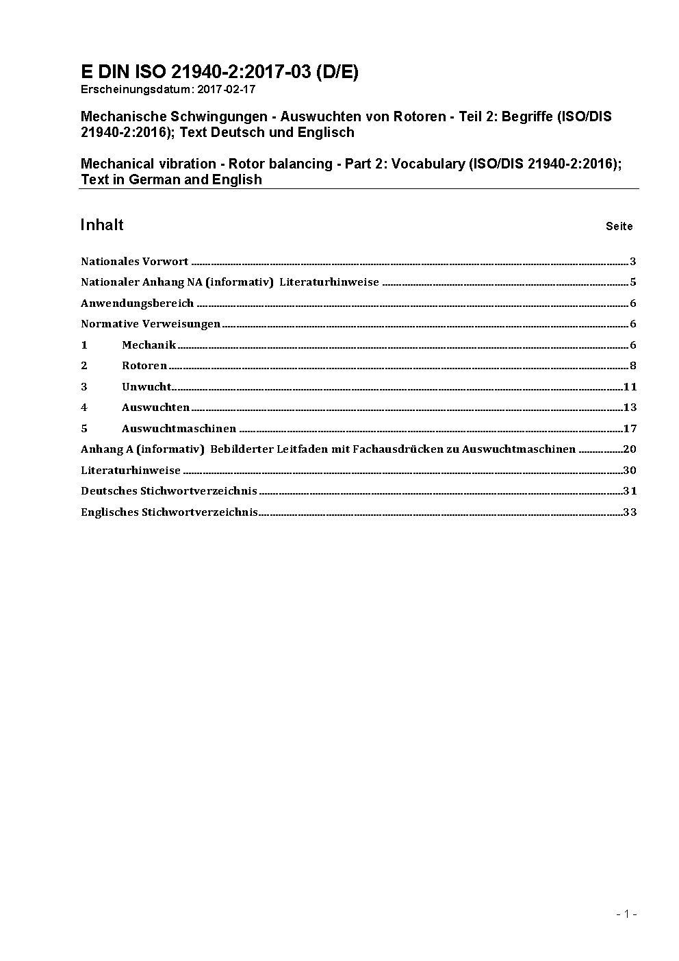Mechanical vibration - Rotor balancing - Part 2: Vocabulary (ISO/DIS 21940-2:2016); Text in German and English
