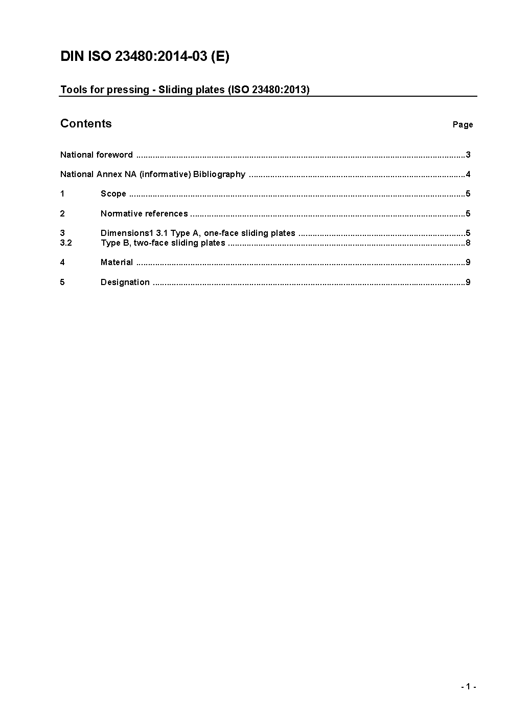 Tools for pressing - Sliding plates (ISO 23480:2013)