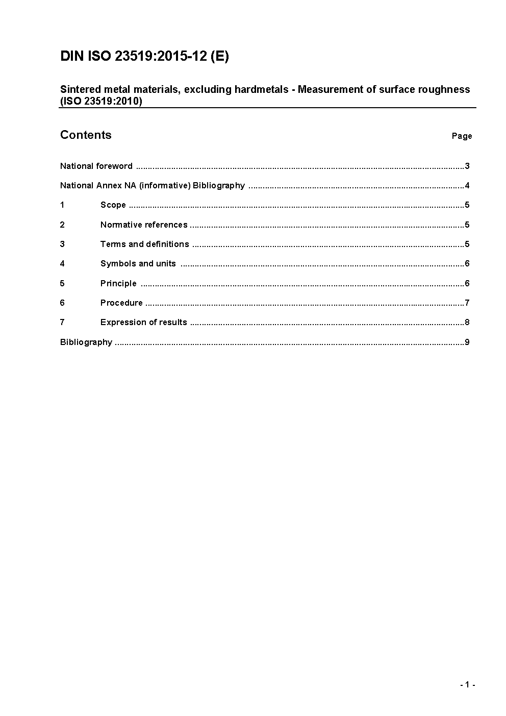 Sintered metal materials, excluding hardmetals - Measurement of surface roughness (ISO 23519:2010)
