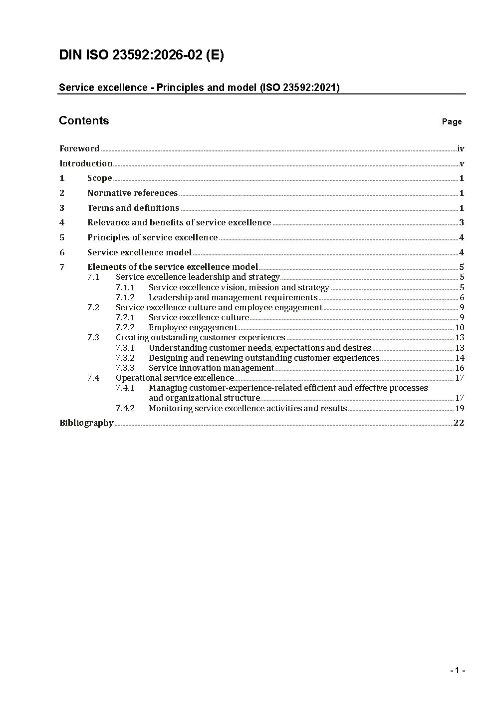 Service Excellence - Principles and model (ISO 23592:2021); Text in German and English