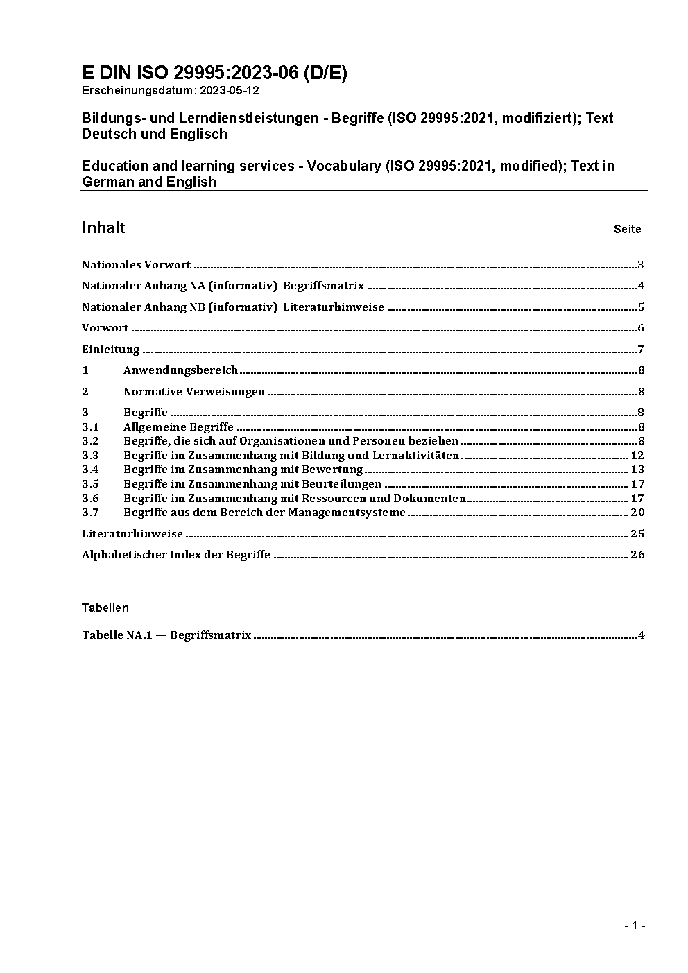 Education and learning services - Vocabulary (ISO 29995:2021, modified); Text in German and English
