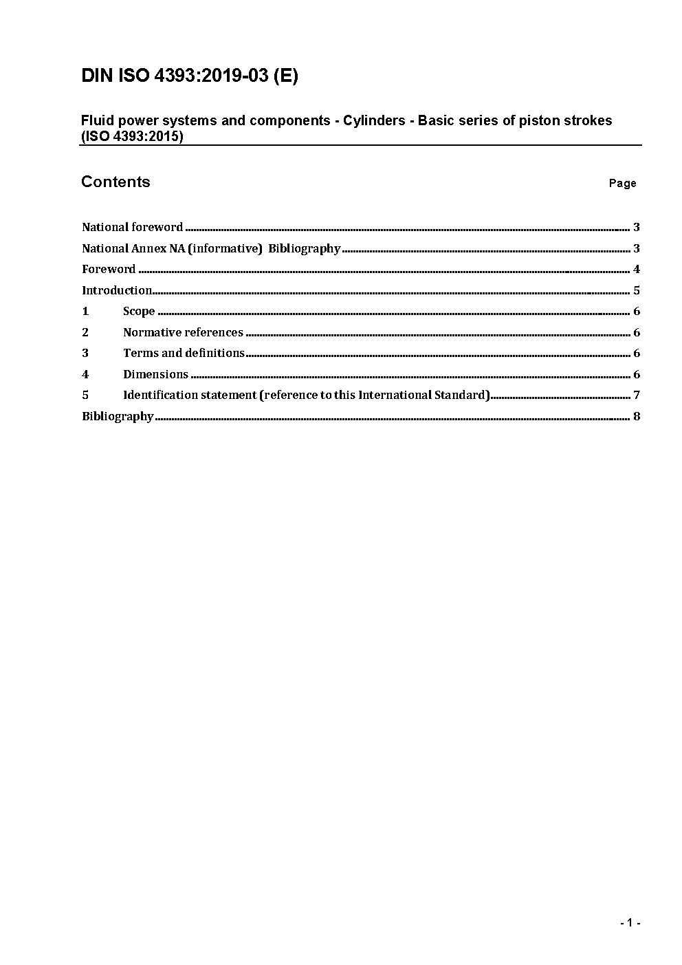 This standard is the translation of ISO 4393:2015 which was developed under German project leadership by experts of the German committee NA 060-36-21-01 AK 'Pneumatische Antriebe' in the department Fluid Power of the DIN-Normenausschusses Maschinenbau (NAM) and the commitee ISO/TC 131, Fluid power systems, Subcommittee SC 3, Cylinders. This International Standard specifies the preferred series of piston strokes for application to singleacting and double-acting fluid power cylinders. These strokes are mainly used for pneumatic cylinders but may also be used for hydraulic cylinders.