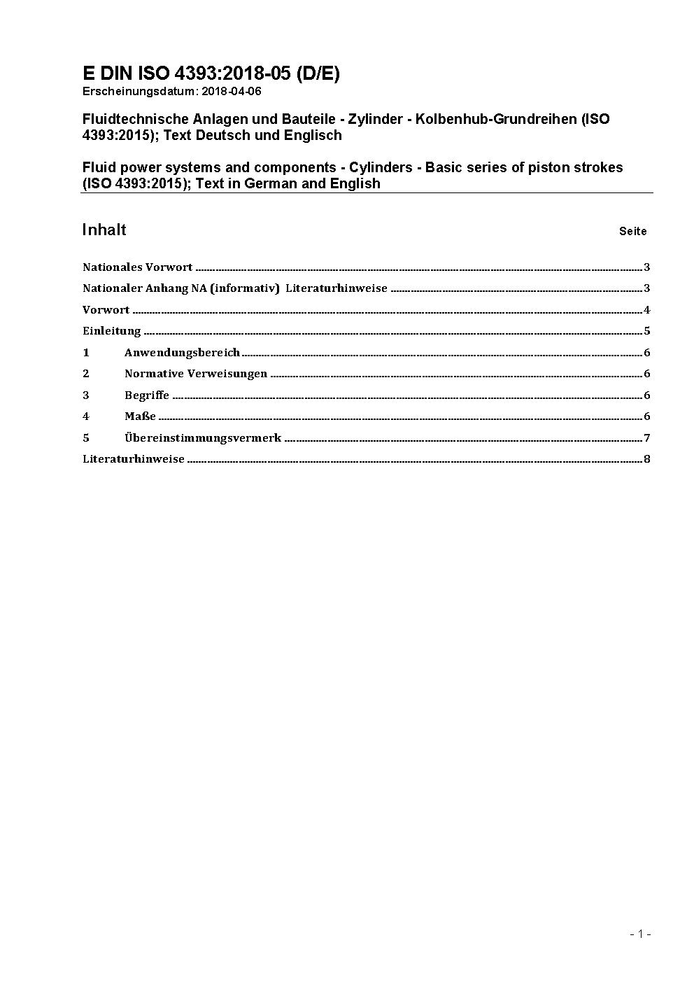 Fluid power systems and components - Cylinders - Basic series of piston strokes (ISO 4393:2015); Text in German and English