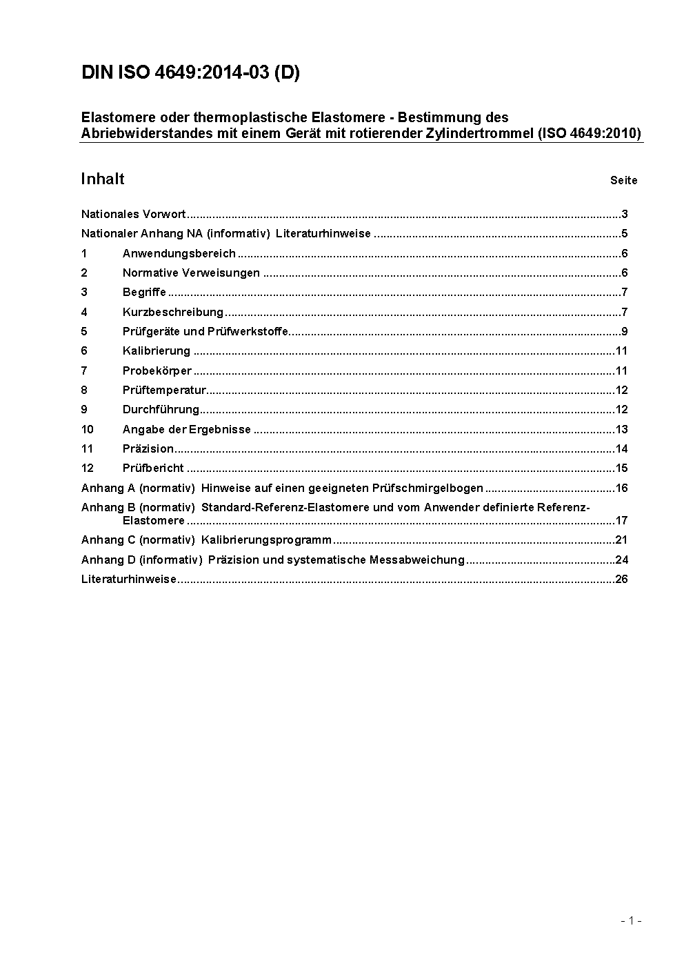 Rubber, vulcanized or thermoplastic - Determination of abrasion resistance using a rotating cylindrical drum device (ISO 4649:2017); Text in German and English