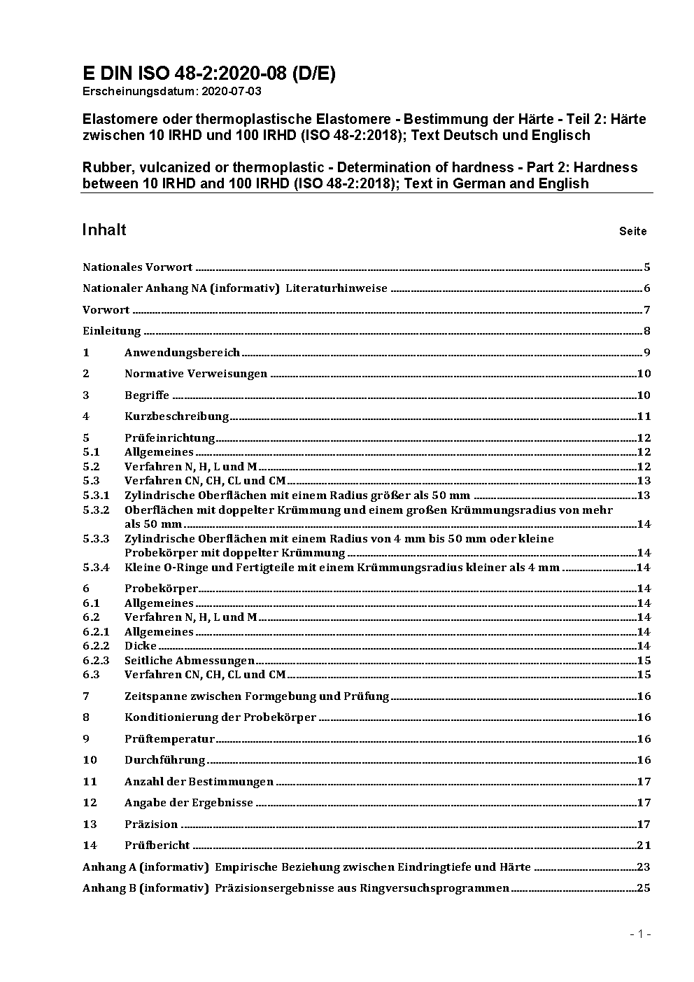 Elastomere oder thermoplastische Elastomere - Bestimmung der Härte - Teil 2: Härte zwischen 10 IRHD und 100 IRHD (ISO 48-2:2018)