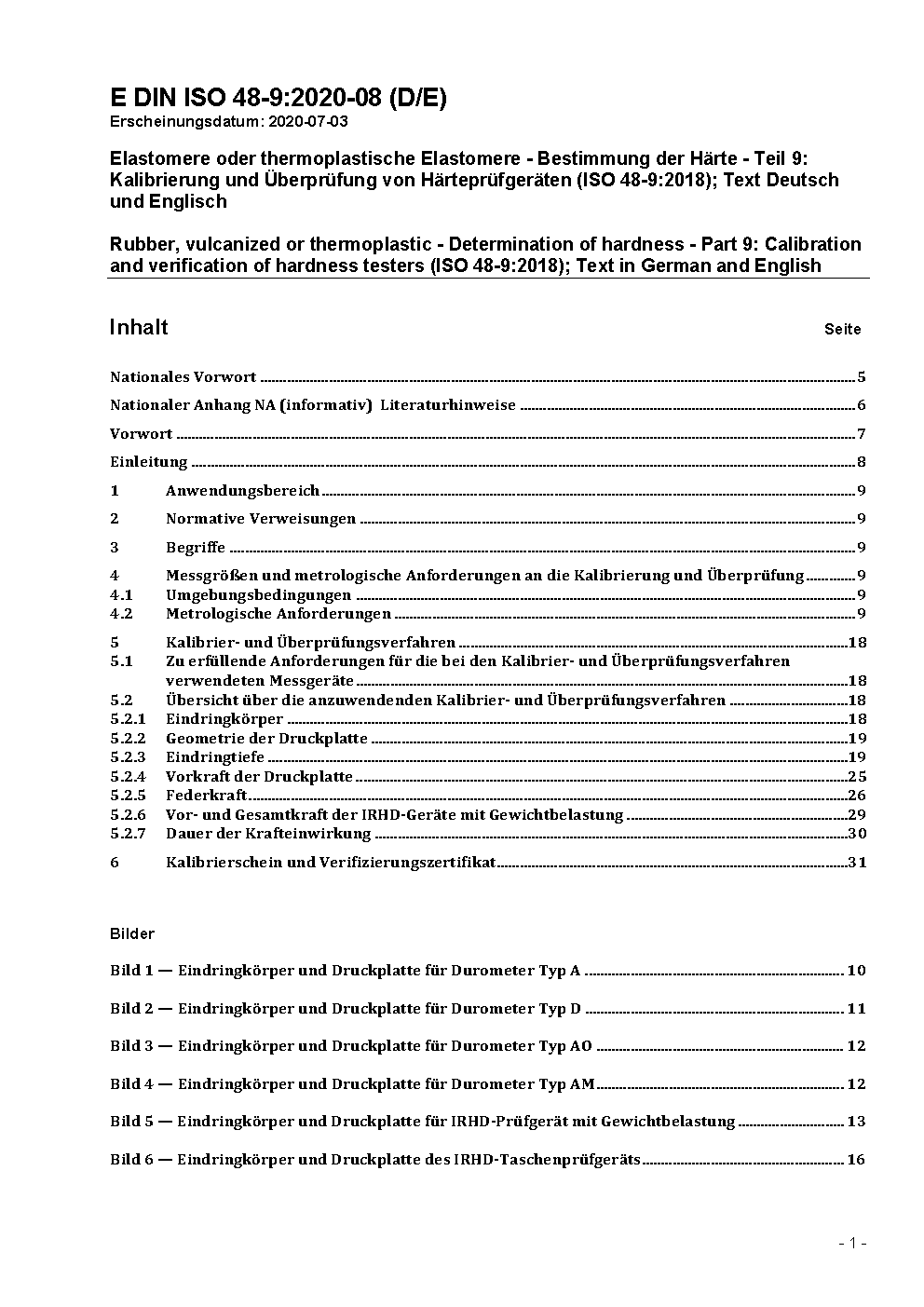 Elastomere oder thermoplastische Elastomere - Bestimmung der Härte - Teil 9: Kalibrierung und Überprüfung von Härteprüfgeräten (ISO 48-9:2018)