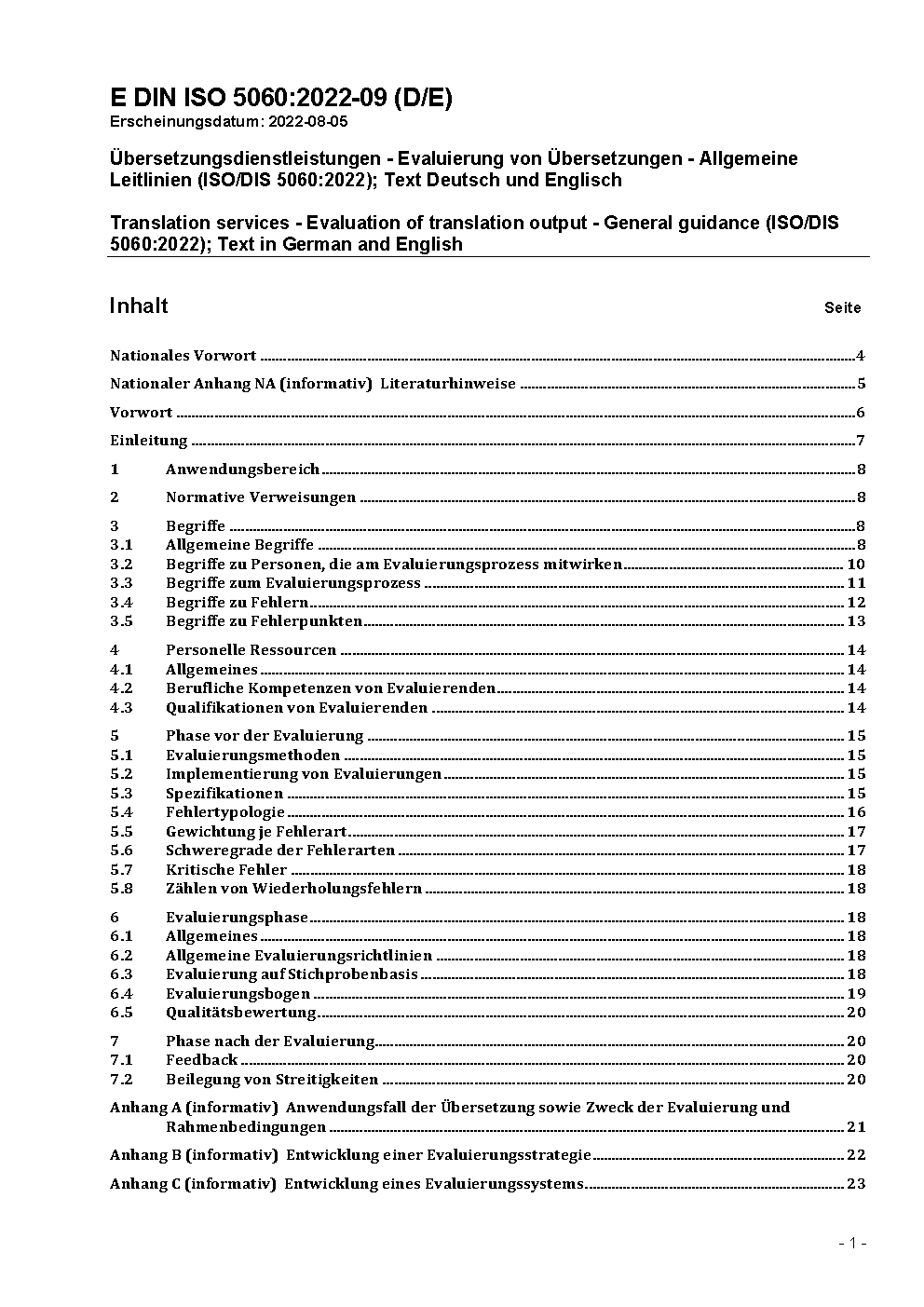 Übersetzungsdienstleistungen - Evaluierung von Übersetzungen - Allgemeine Leitlinien (ISO 5060:2024)
