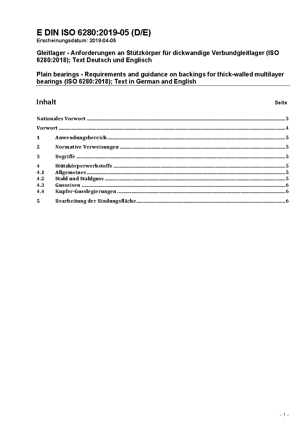 Gleitlager - Anforderungen an Stützkörper für dickwandige Verbundgleitlager (ISO 6280:2018)