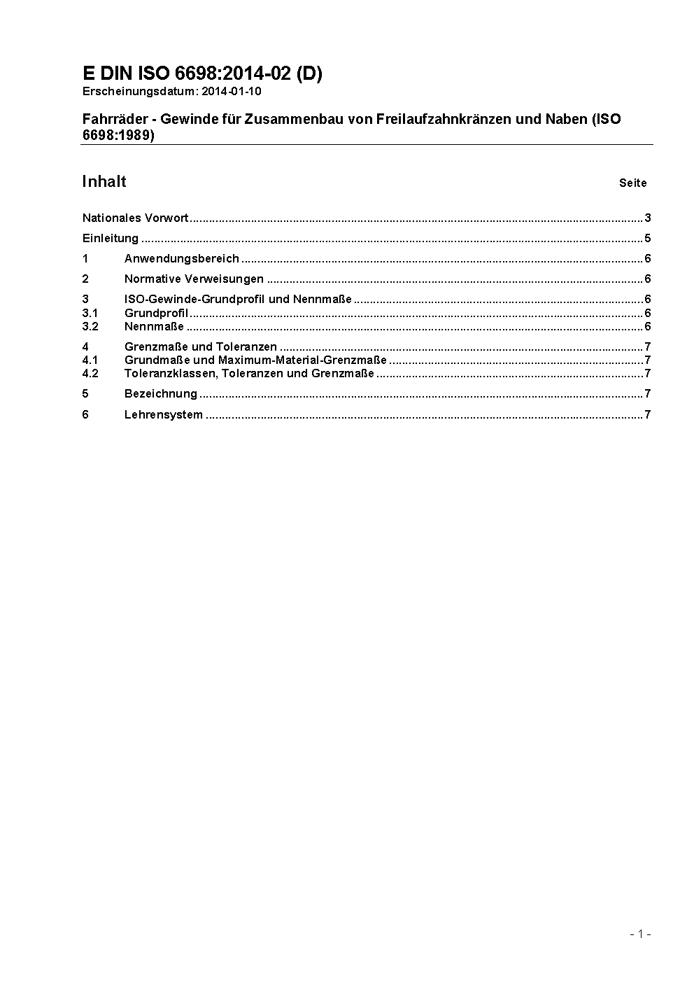 This standard specifies the thread profile and limits and tolerances for the screw thread used to assemble free wheels on bicycle hubs.