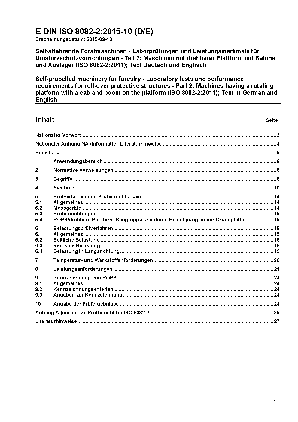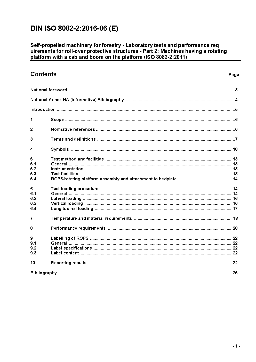 This standard specifies Laboratory tests and performance requirements for roll-over protective structures on Self-propelled machinery for forestry with a rotating platform.