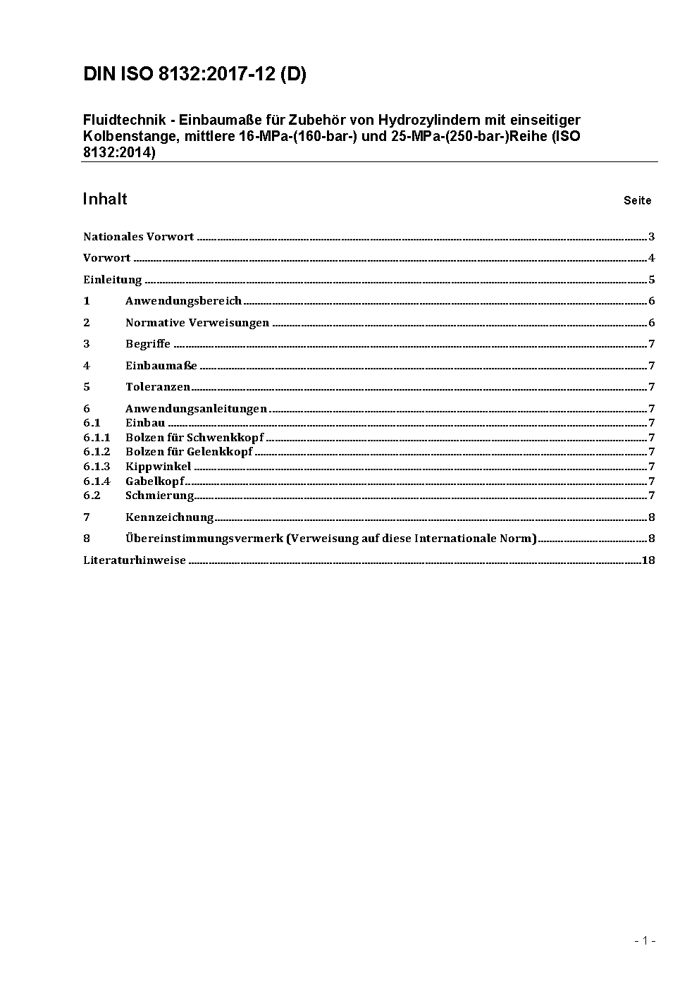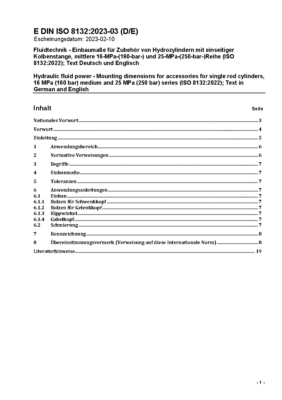 Hydraulic fluid power - Mounting dimensions for accessories for single rod cylinders, 16 MPa (160 bar) medium and 25 MPa (250 bar) series (ISO 8132:2014)