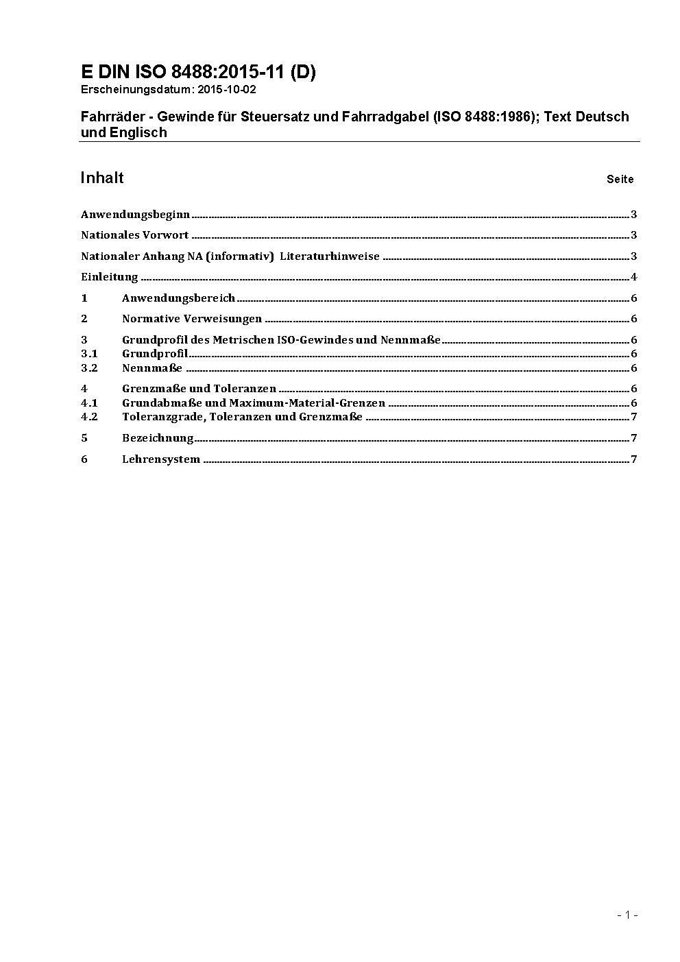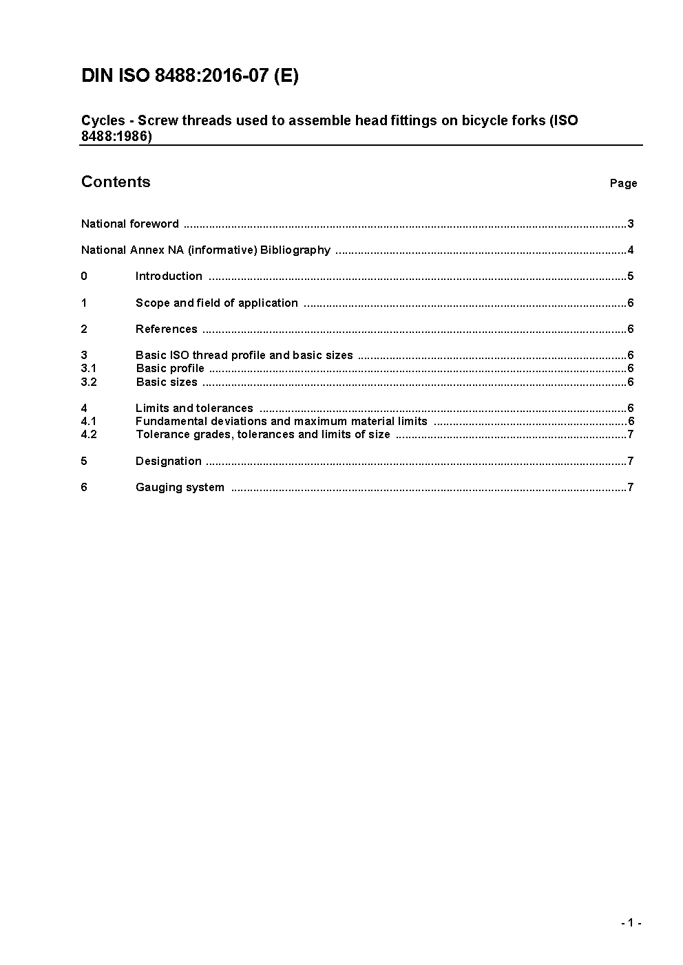 This document specifies details of the screw threads used to assemble heads, i.d. fittings, on bicycle fork steering columns.