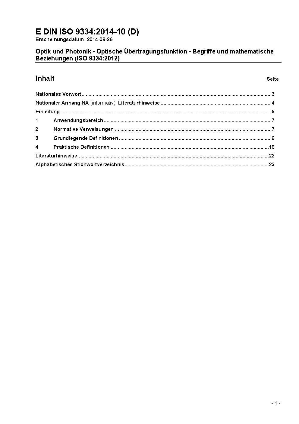 Optics and photonics - Optical transfer function - Definitions and mathematical relationships (ISO 9334:2012)